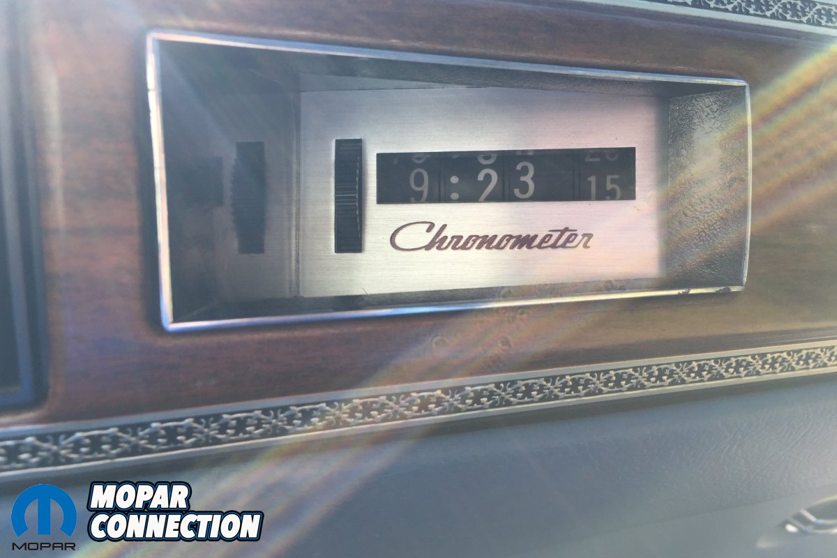 Besides the T-tops, the car was ordered with bucket seats, center console, chrome styled road wheels, leather covered steering wheel, AM/FM stereo with 8-track player, power deck lid release, power windows, power locks, power driver’s seat, rear window defogger, cruise control, tilt steering wheel, dual sport (painted) remote mirrors, deck lid tape stripe, leather seats, deluxe 3-speed windshield wipers, light package, undercoating, air conditioning ,tinted glass, trunk dress up kit, protective door rub strips, electronic clock and the 400 4bbl with the “Lean Burn” electronic ignition system under the hood. To make things even better, John’s Cordoba is optioned with the rare Crown Roof Package, which consists of special opera styled windows, an elk grain vinyl top, special pin-striping and an over the roof illuminated light bar.