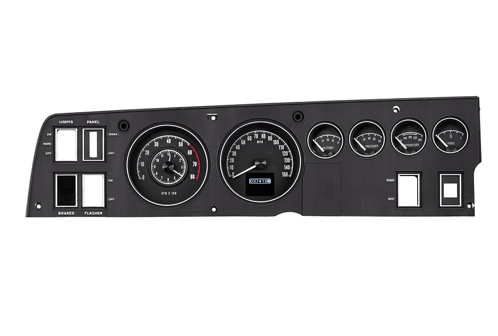 The truest ode to one of Mopar’s greatest clusters is the familiar clock/tachometer combo that no ’68-’70 B-body should have to live without. Installation is simple with a central programmable control box handling the brunt of communications. Just remove the bezel and switches from your old cluster, install them on the new RTX unit, wire it up, and bolt it back in with factory hardware.