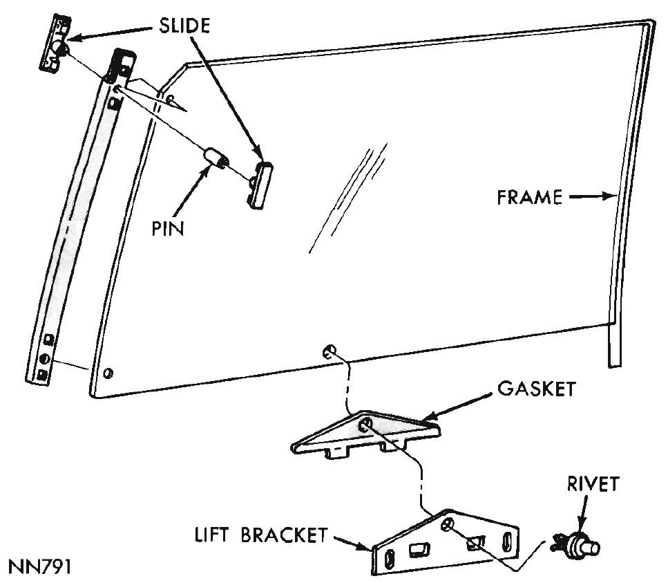 Each side’s assembly consists of the channel seal, four slider shoes, and two pins for attachment. Page 23-46 of the 1969 Dodge service manual gives those who haven’t had the pleasure a better look at the situation within.