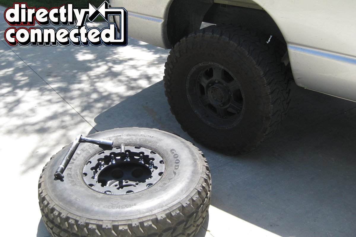 A little web research led us to Hummer H1 bead-lock wheels and military spec Goodyear 37” tires. These tires are military surplus tires and can be found in great shape for less that two hundred dollars a piece! In addition to cheaper cost, these tires are also build extremely sturdy in order to handle remote combat situations. This sounded like a perfect recipe for a double duty Ram!