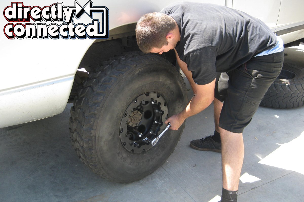 By using the military tire we were also able to upgrade to a Hummer double bead-lock wheels, which will allow the tires to be aired down extremely low without loosing a bead out in the dirt. We wanted to maintain a good wheel offset in order to let the big tire fit properly on the truck so we turned Marc with El Dorado 4×4 to make a set of re-centered H1 bead-locks for the truck. Lots of options such as desired offset, bolt pattern, number of bolts, and rock ring style are available for these bead-lock rims. Ours tires came pre-mounted on a set of re-centered 12 bolt rims with the optional 1/4” rock ring.