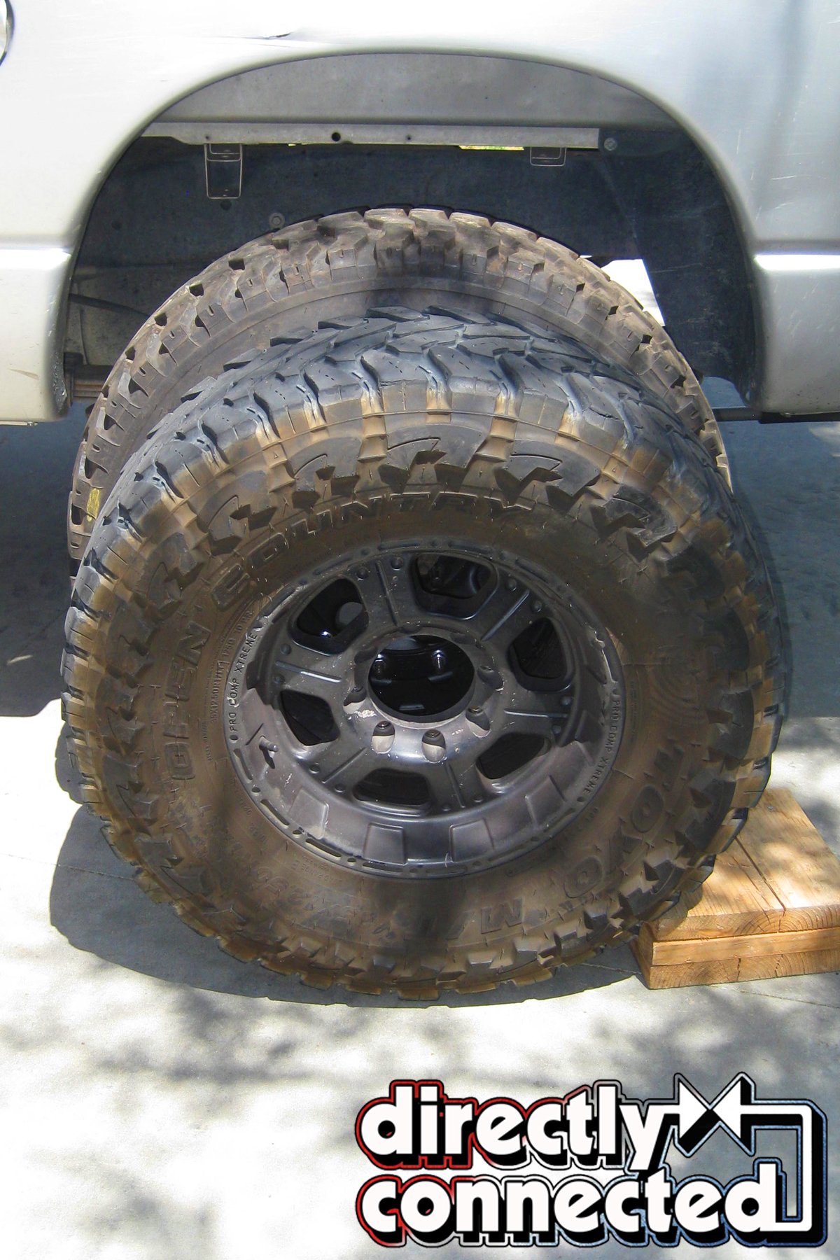 Using a truck in excess of ten thousand pounds as a street sport truck, tow pig, and dirt toy demands a lot from your tires. With a heavy right foot on and off-road the truck was known to go through sets of tires in less than a year. Because 35” mud terrain tires go for three to four hundred dollars a piece, it became clear that we needed a cheaper tire that could take the abuse.