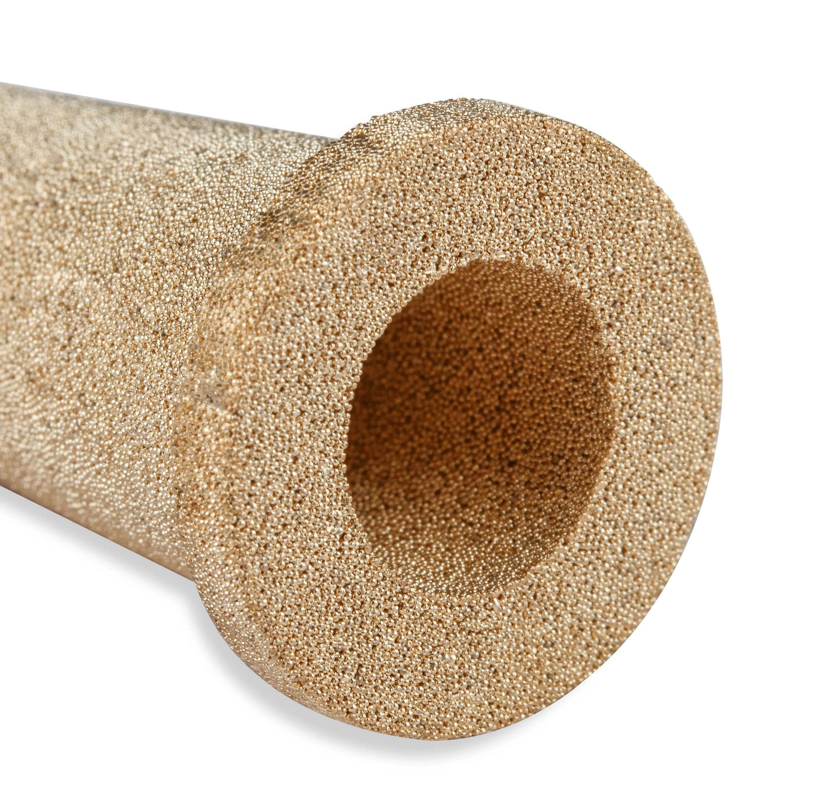 Above left: There are three washable/reusable bronze filter element options for the Vapor Guard fuel filter. The first filter option is a pre-filter that is rated at 100-microns. The second option is a filter rated at 30-microns, and it operates effectively with carburetion. Lastly, there is a 10-micron filter that works with EFI fuel systems. All three filters and the housing can safely operate with fuel pressures up to 100 psi. Above right: The fuel filter body has one end that unthreads to allow the filter element to be installed. The filter housing nipple is designed to allow a fuel hose to slip over it, but once a hose clamp is installed, the hose cannot slip off the fuel filter nipple.