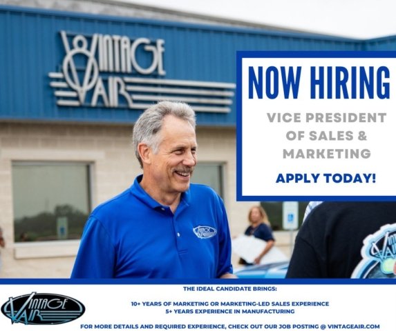 Vintage Air, the leader in adapting modern air conditioning systems to classic American hot rods and muscle cars, is looking for a new Vice President of Sales & Marketing. It really doesn’t get that much more simple and straight-to-the-point.