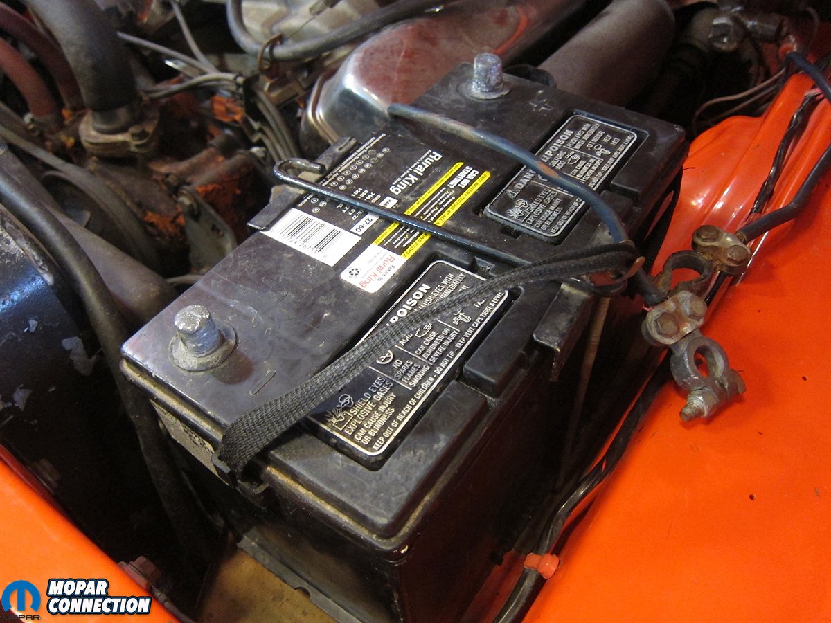Since the Charger didn’t originally have an ECU, we had to find a place to mount it. It needs to be away from heat, but close enough to the other components for the wiring harness to reach. Next to the voltage regulator worked well for our application. Since the ECU requires a good ground, we cleaned off some paint from the firewall to ensure contact.