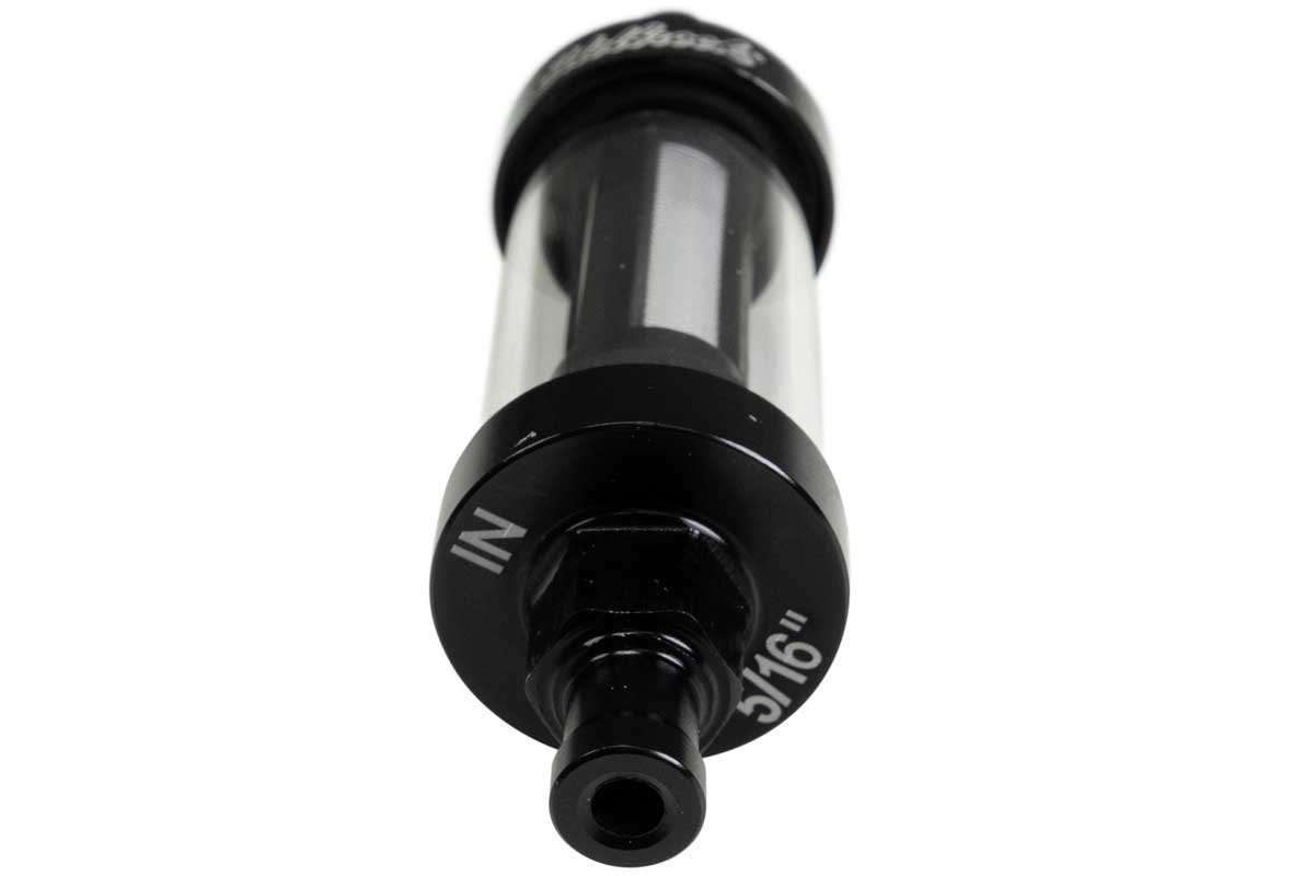 The Edelbrock Clear View Fuel Filter is available in 5/16-inch (part no. 8747) and 3/8-inch (part no. 8748) inside diameters. The see-thru design not only dresses up the engine bay but also affords a quick visual check of filtered contamination and the fuel flow.