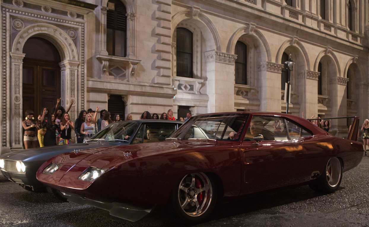 In Fast & Furious 6, the Charger is back but this time, it’s shown as a blood red custom Daytona Charger. It’s presumed though that it’s an entirely different Charger based on the fact the movie shows them getting the Daytona from an high dollar car auction in London, England. The Daytona Charger plays a big role in this movie, starring in a lot of key scenes to the movie. Of course, just like every other Charger in the franchise, it gets wrecked as well. The fate being driven head-on into a concrete barrier on the highway while trying to save an airborne Letty after she gets thrown from a flipping tank.