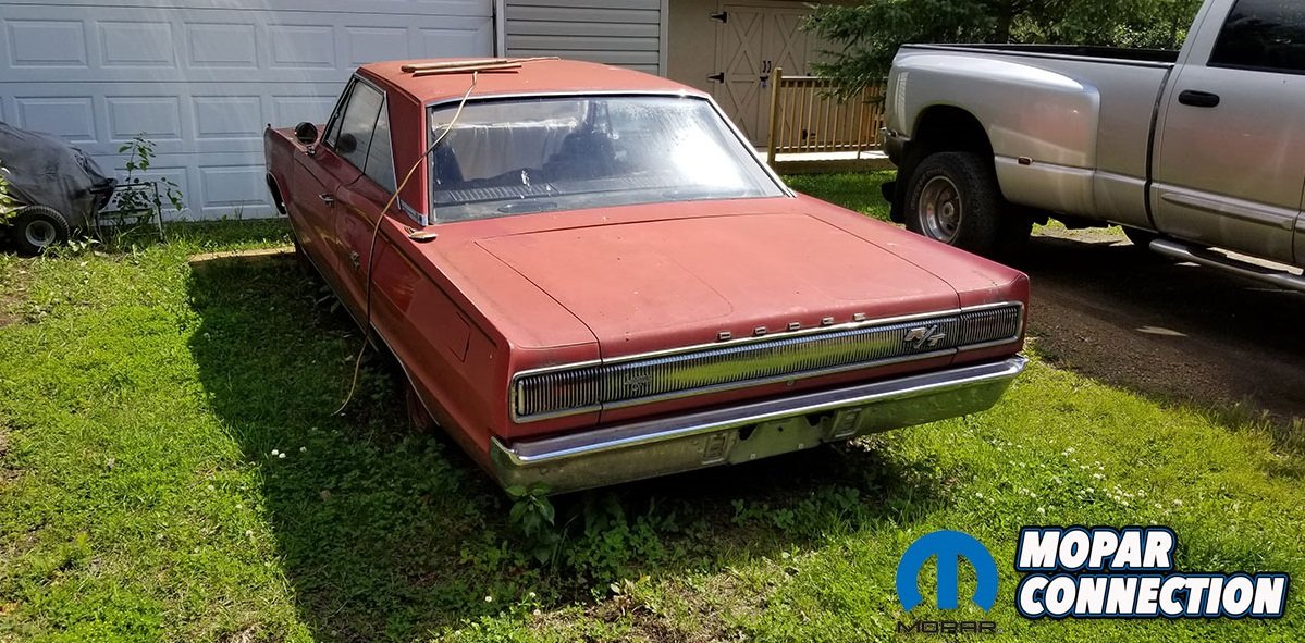 “I met my friend Jack back in 2010. We were local to each other and both bought brand new 2010 Challengers in Plum Crazy Purple; his being an SRT8 and mine being an R/T Classic,” recalls John. One day, John went over to Jack’s for a visit and noticed a red 1967 Dodge Coronet R/T sitting out front of his garage. The paint was faded but the car looked to be solid and all there.