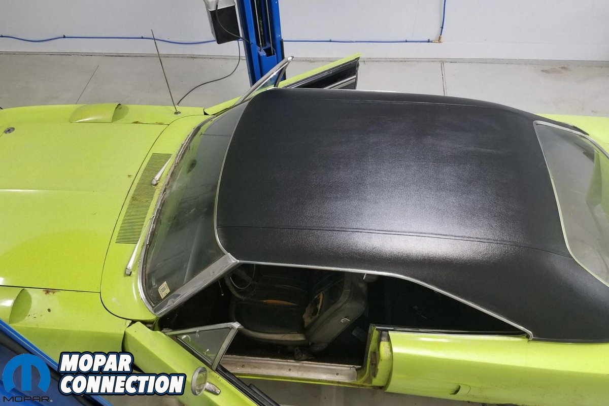 Bob says, “We determined before we even winched the car onto the trailer that both of the quarter panels would need to be replaced, the top portion of both fenders behind the scoops need repair and the nose would have to be repaired as it has a dent in it. However, the vinyl top was perfect and the interior was beautiful besides needing to have the bench seat repaired and new carpet installed.” Upon arriving home to Southern Indiana with the car, Bob snapped a few more pictures and proceeded to wash the car. After that, he vacuumed and cleaned out the interior. “We found several dollars’ worth of change and deep cleaned and conditioned the vinyl top and dash pad. There was absolutely zero rust around the windshield or dash pad; inside or out. The back window and moldings were great too and the car had absolutely no leaks when we washed it. We attribute this to the forty-three years of darkness leaving all the rubber in excellent condition,” shares Bob.