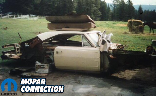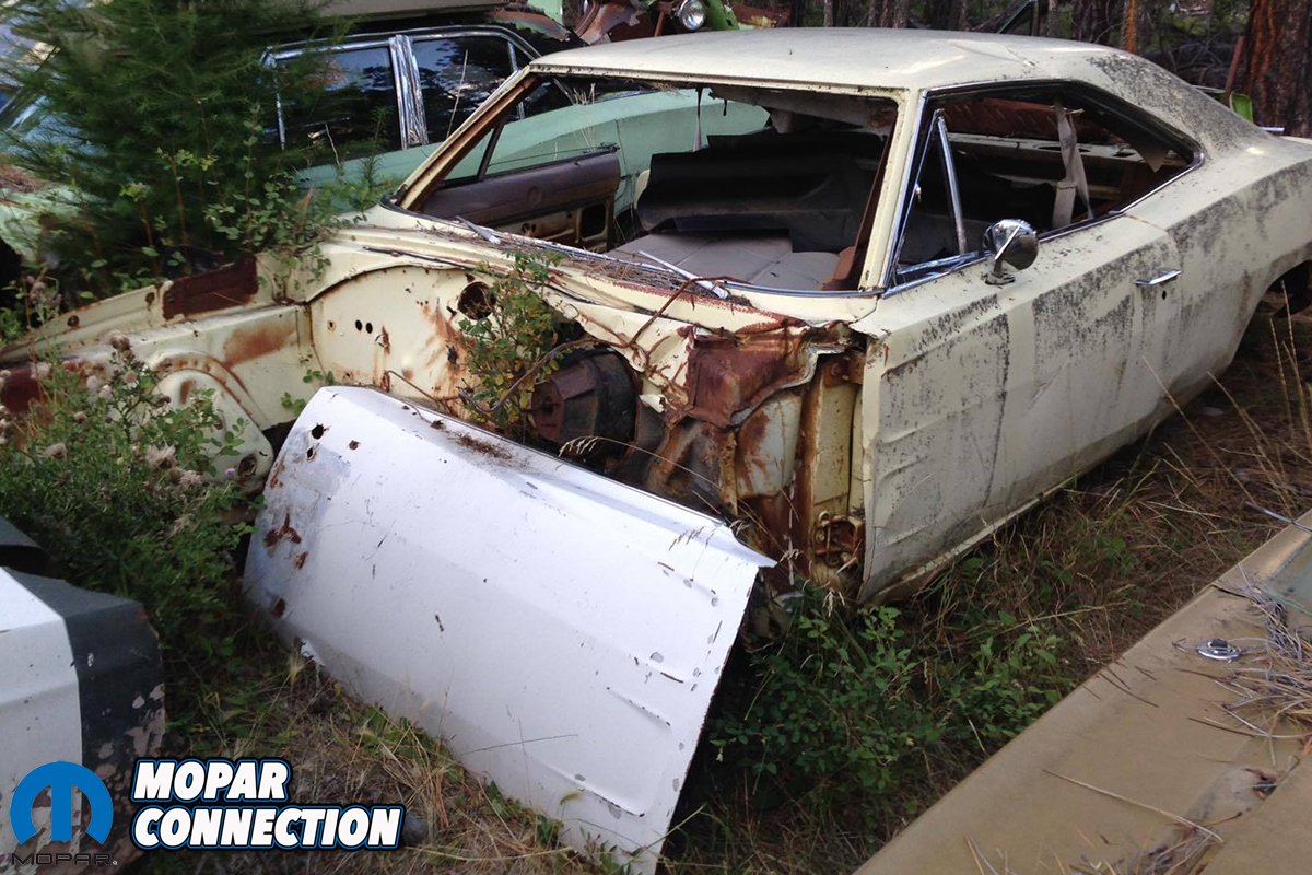 Above and below: The Charger as Forrest found it. There wasn’t much left but he saw the potential in it.