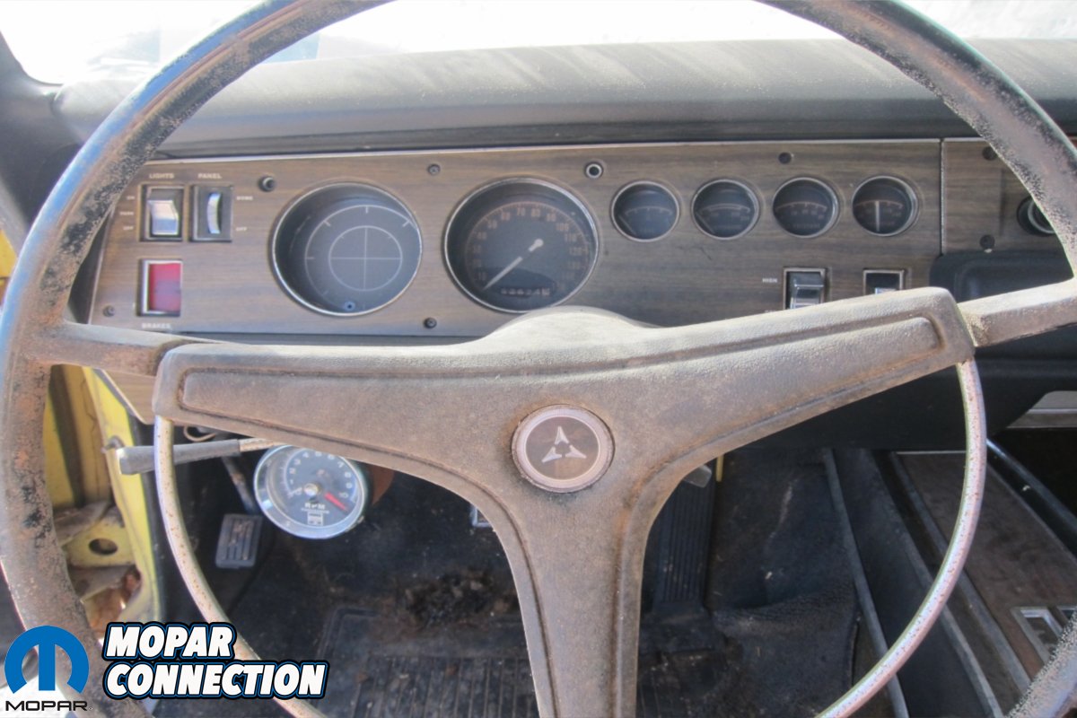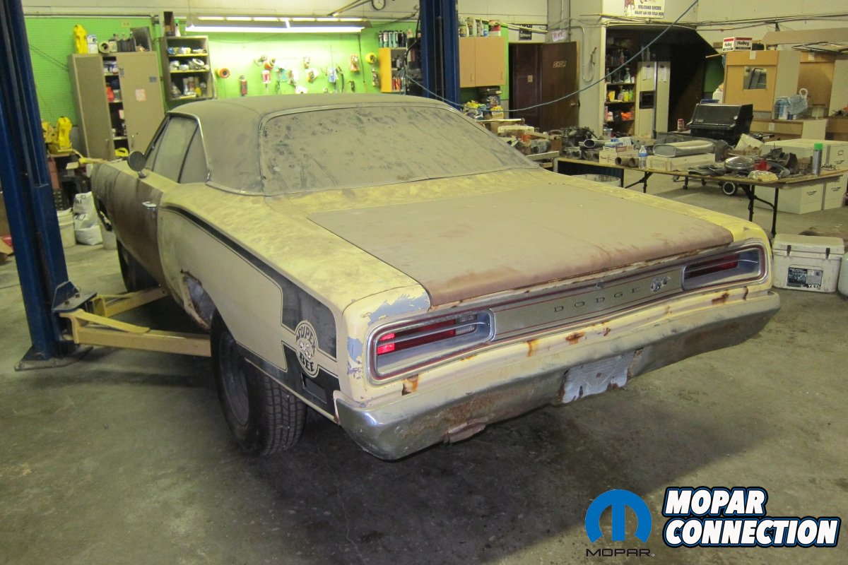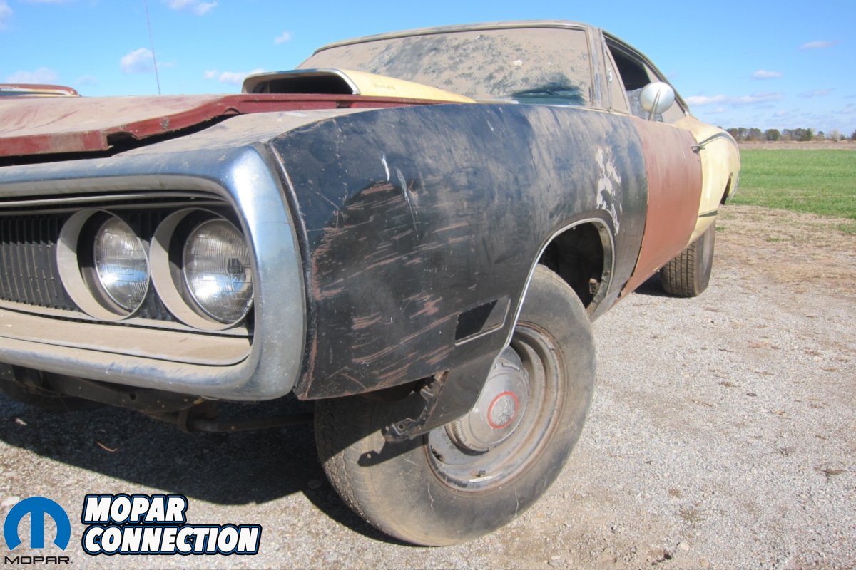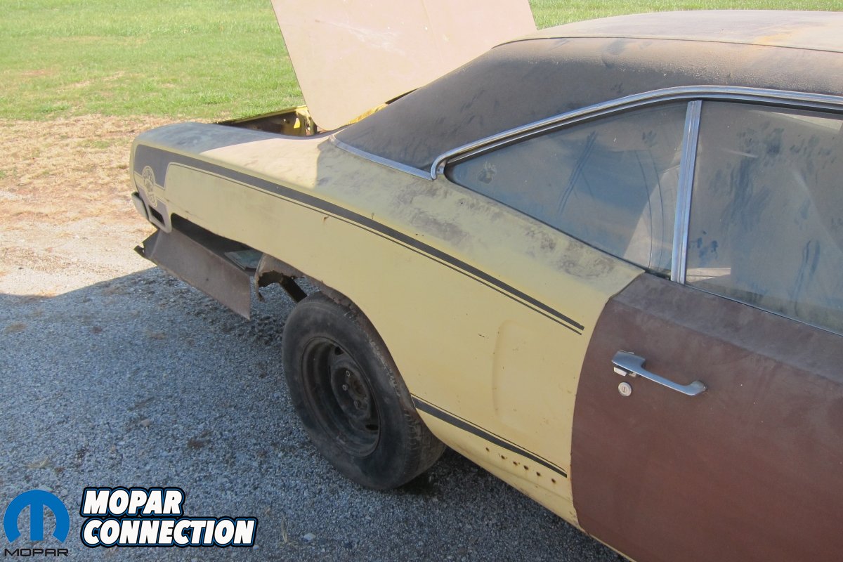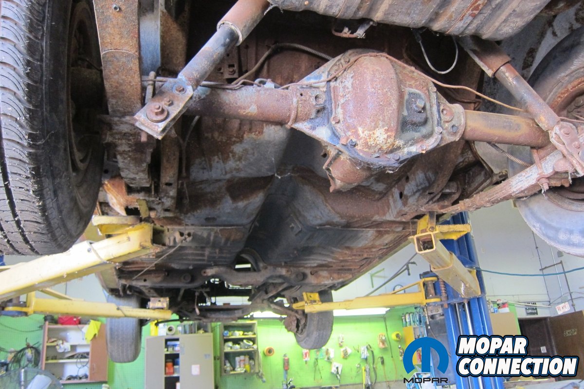 Rust had already started to come through on the quarter panels, the trunk floor extensions were cut out, and much of the front-end sheet metal had been replaced. Luckily, the Hemi- specific K-frame, Dana 60 rear end, and complete interior were all present.
