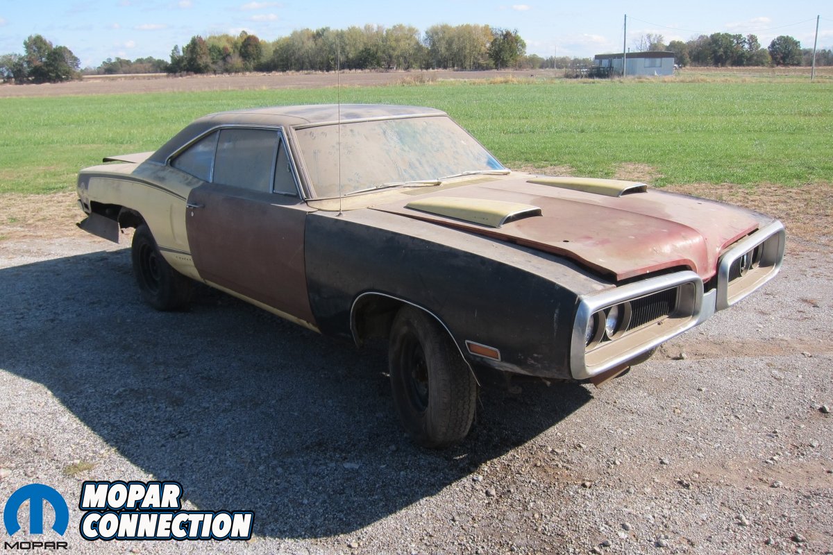 determined. While a 1965-vintage 426 Hemi was included with the purchase, the original engine and transmission were long gone. Actually, even though the car was less than fifteen years old at the time with just 62,624 miles on the clock, it was apparently not well cared for.