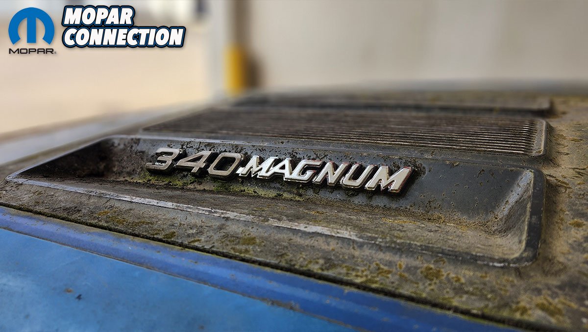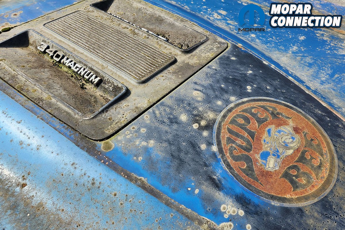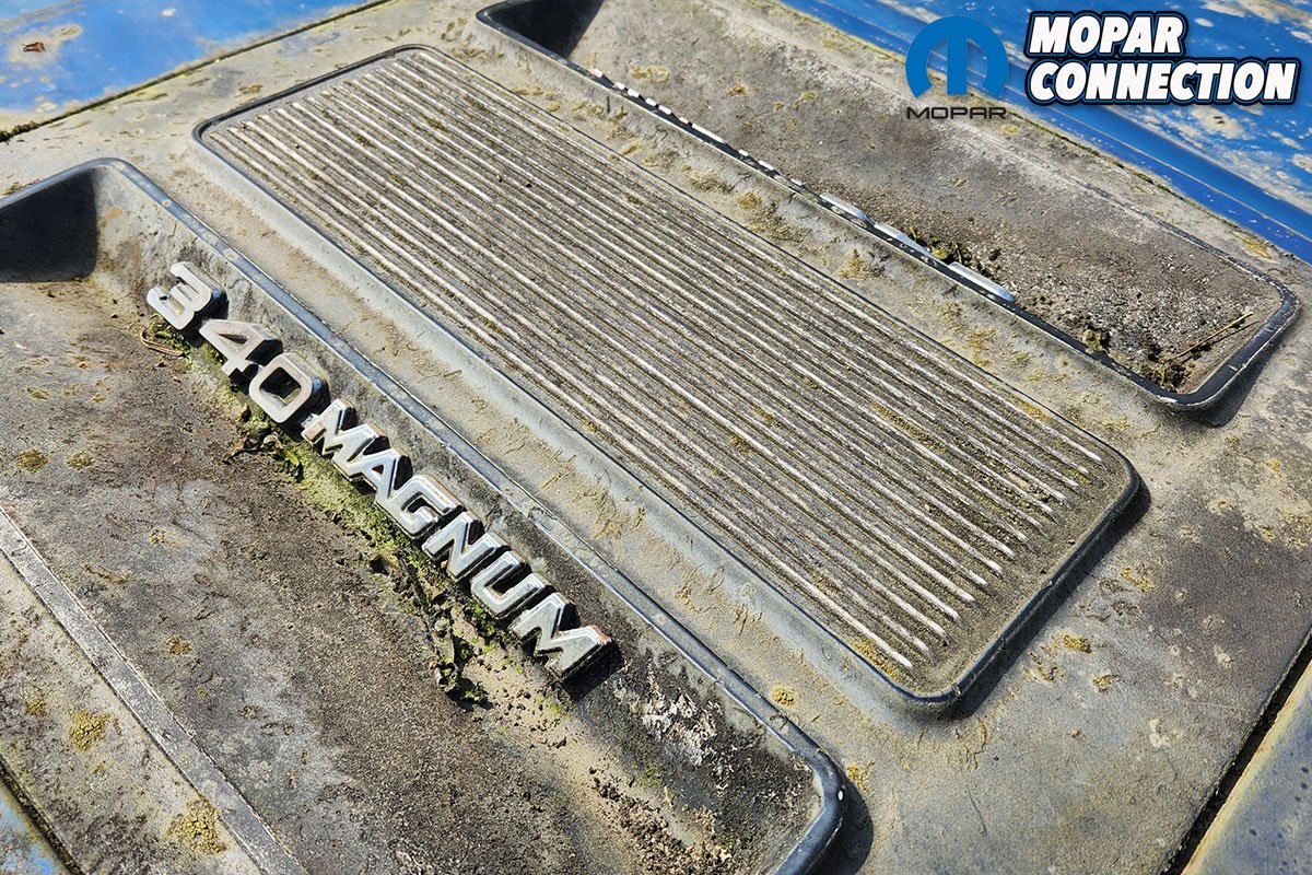 On my way back down the driveway, I stopped and took a quick peek at the Super Bee. The first thing I noticed was the 340 Magnum call outs on the hood. This caught my attention quickly as I knew that 340 Super Bees were fairly rare with only 307 total being built. I didn’t want to loiter too much so I did a quick once over of the car and left. I noticed it had a blue bucket seat interior, black vinyl top and was a column shift automatic.