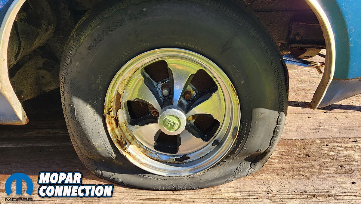 Thankfully I came prepared with wheel dollies and a compressor. We pumped up all of the tires which surprisingly held air and started winching it onto the trailer. Of course my luck, the second the old dry cracked tires touched the trailer ramps, they blew apart.