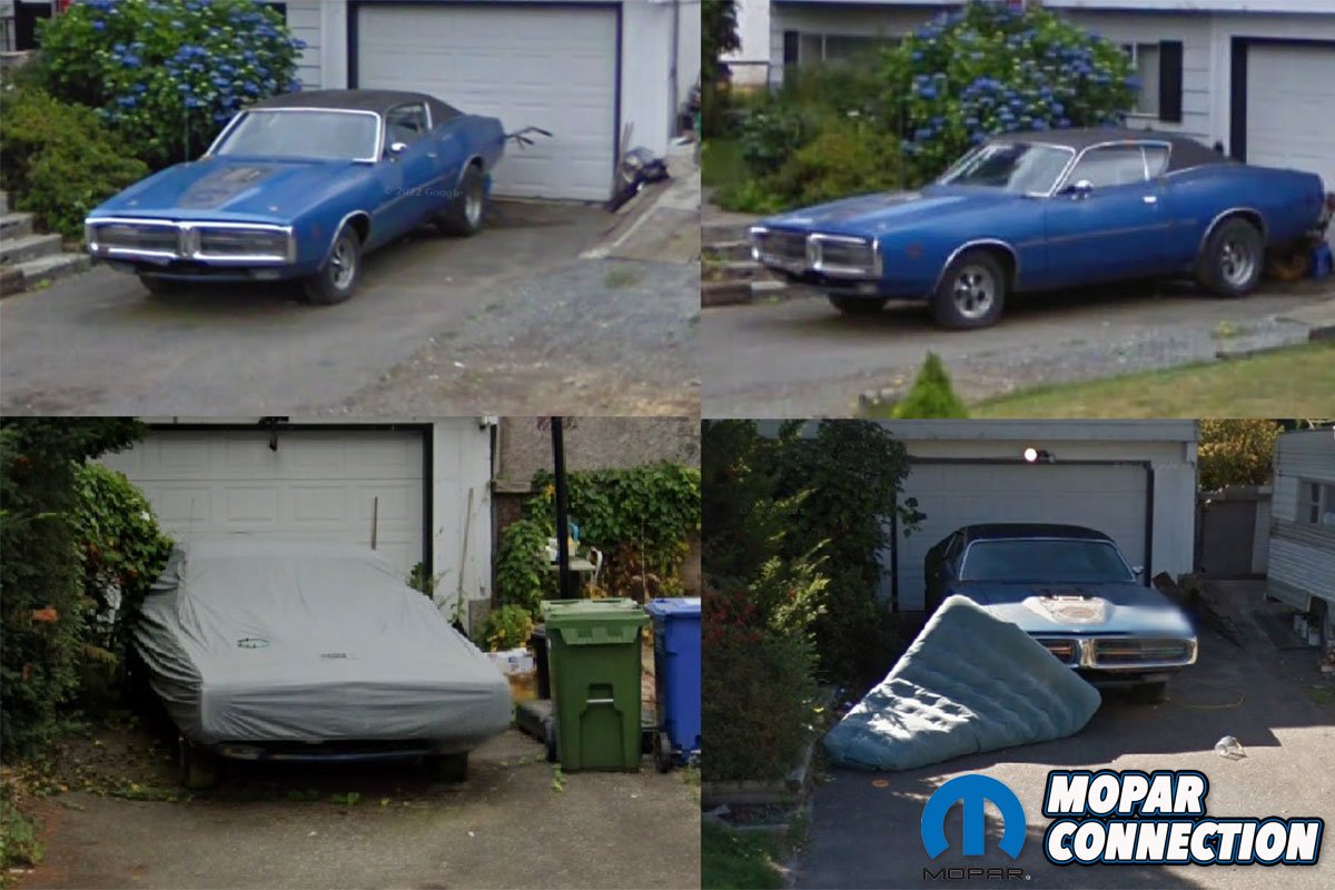 About 8 years ago, a good friend of mine, Dean Meneghetti told me about a B5 Blue 1971 Super Bee sitting in a driveway in Abbotsford, British Columbia where it had sat for a long time. He said it had been there since at least the 1990’s. I looked it up on Google Maps and sure enough, there was the car right out in the open. Some years during Google Maps’ drive-by, it even had a mattress on top of it. Eventually it was covered up with a cheap indoor car cover.