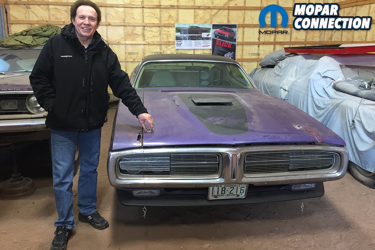 In 1970, Geordie McAllistar was a 22-year-old Mopar enthusiast living in Ripples, New Brunswick. He had previously owned several cars over the years; none of which you might call a “muscle car.” On August 25th 1970, Geordie strolled into Elm City Chrysler in Fredericton and talked to the sales manager, and sat down to order Geordie’s first new car. Geordie had previously seen and fallen in love with a 1970 Charger R/T in Plum Crazy Purple. The ’70 had white interior and a black vinyl top and from then on that image stuck in his mind.
