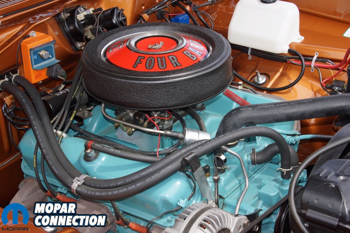 Rich assembled the engine and joined the 340 to the cleaned and detailed 4-speed. He slipped the assembly into the Swinger’s engine bay. Rich added a Mopar Performance electronic ignition and substituted the Carter AVS carburetor in favor of a new Edelbrock AFB style 750 cubic feet per minute (cfm) carburetor.