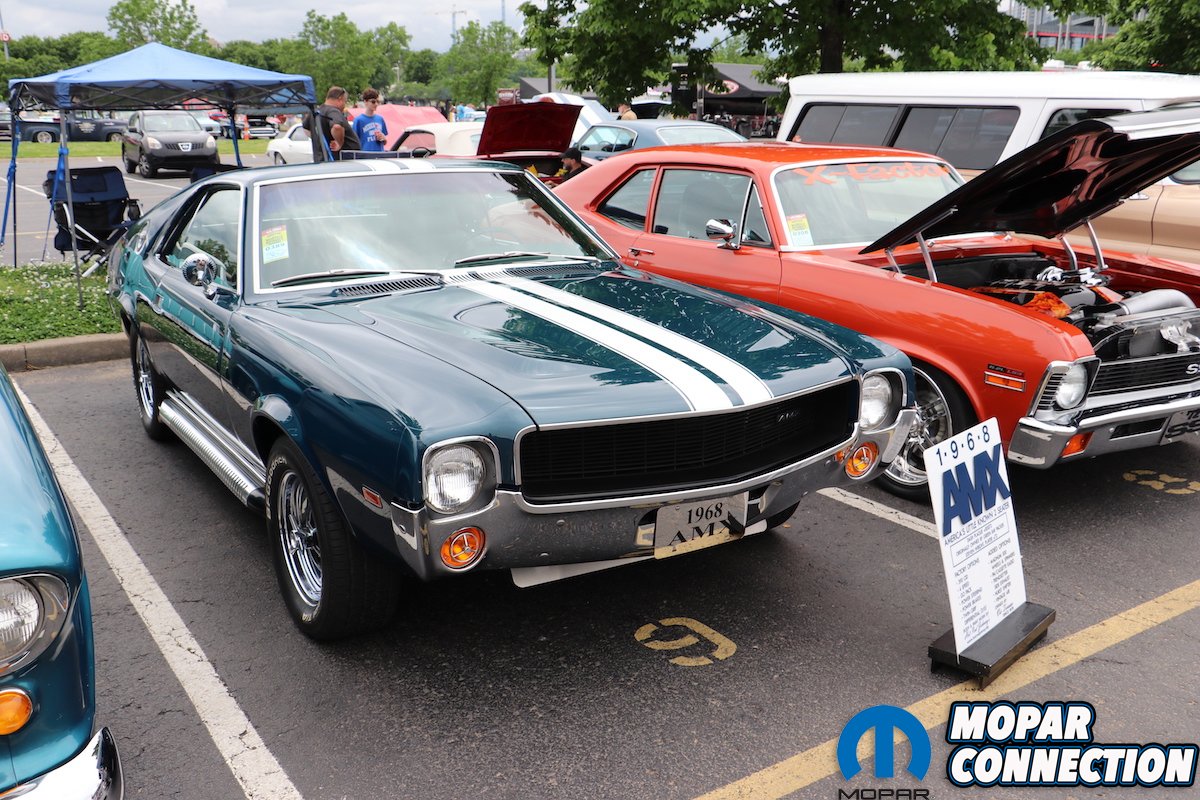 In fact, there were as many late-model Hemi swapped Mopars as there were vintage LA, B and RB-block powered machines in attendance. It made it abundantly clear that the new Hemi was as accepted as vintage powerplants. The Music City Mopar Club had staked out a shady spot near the entrance, showing a ’69 Barracuda, a ’70 Challenger and a Sport Fury. A pair of big-rimmed ’69 Plymouths (a Road Runner and GTX) were found sprinkled about, as was a first generation Charger. Toss in a D100 van and an AMX, and we had a pretty eclectic selection of Mopar iron even in spite of the drizzling skies.