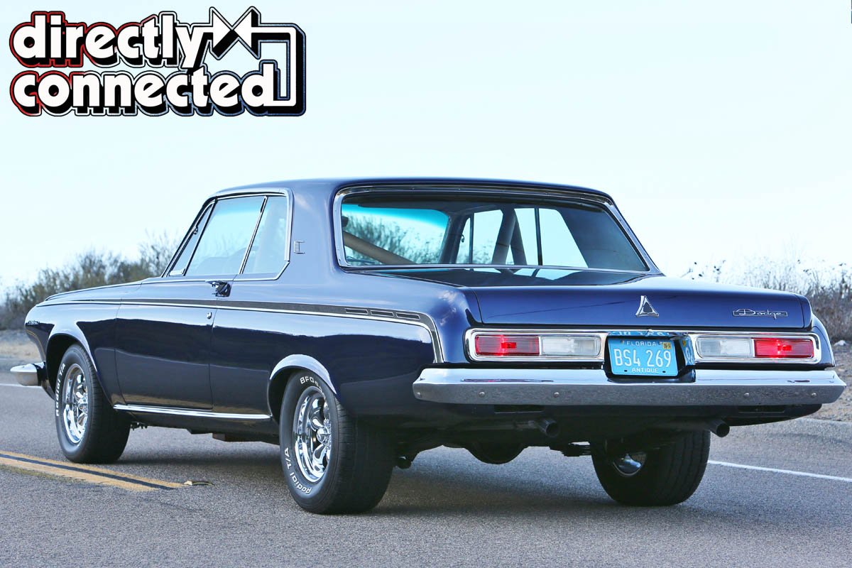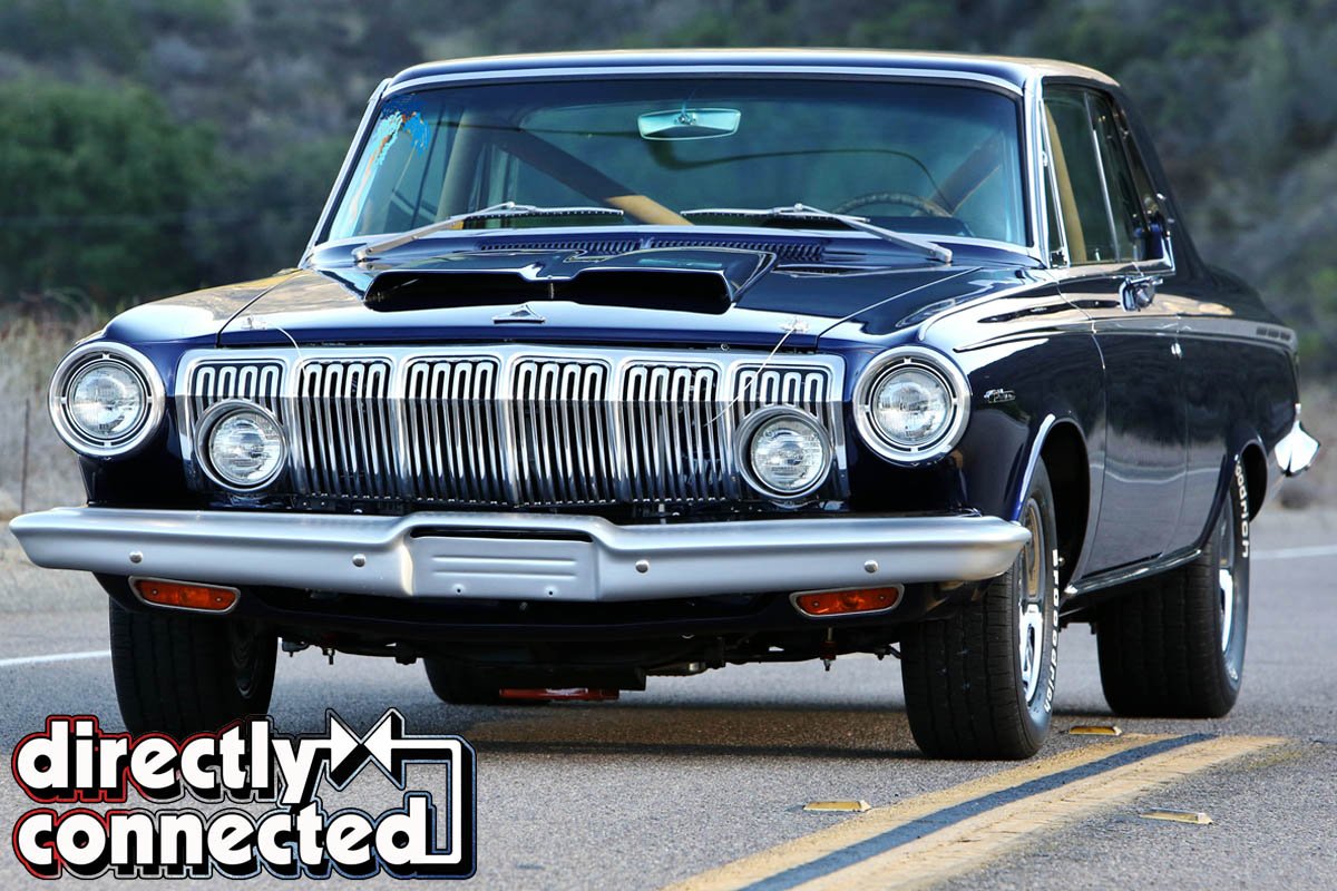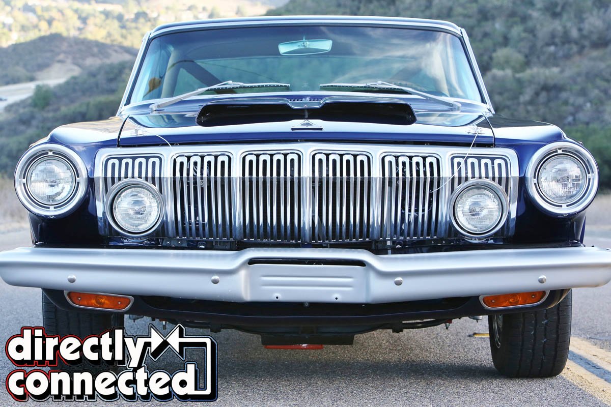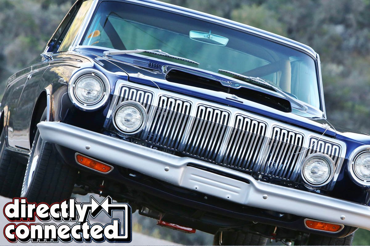 Bolted to the Edelbrock aluminum cylinder heads is a Hilborn stack injection system prepared by Bob Ream of Imagine Injection that replaces the original ram-induction intake manifold and dual Carter four barrel AFB carbs. A Fast EZ EFI, with an Imagine Injection harness insures that the engine runs perfectly every time the owner spins the key. The sweet sounds of the injected Max Wedge are provided by Dyno Max mufflers, while open headers always remain an option in the event that a call to duty for some quarter mile action beckons.