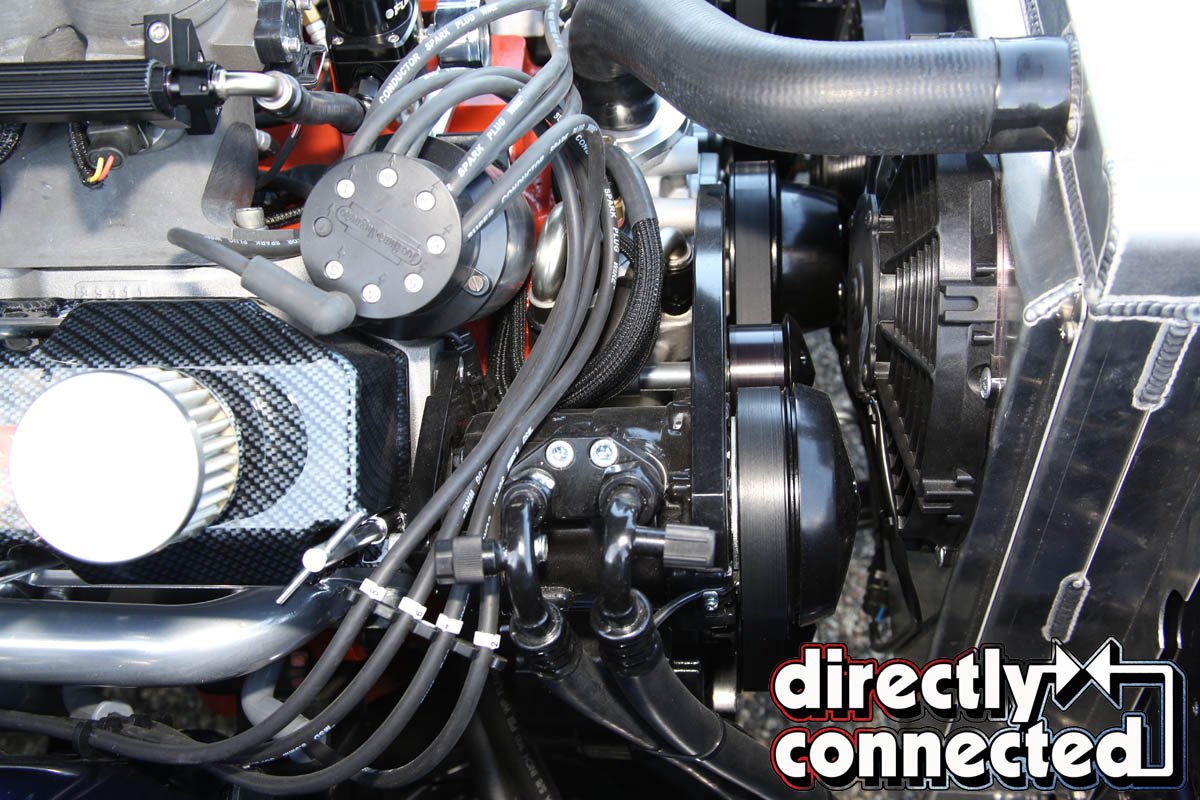 Backing up the revitalized Max Wedge is a near bullet proof Chrysler A-727 TorqueFlite equipped with a Hughes 2800 rpm stall torque converter. Carbon fiber accents on the Max Wedge provide the perfect visual complement to the old and new approach utilized on the engine build. The Hilborn injection, the Mr. Norm’s 50th Anniversary logo valve covers and master cylinder cover all feature carbon fiber accents that are repeated throughout the vehicle.
