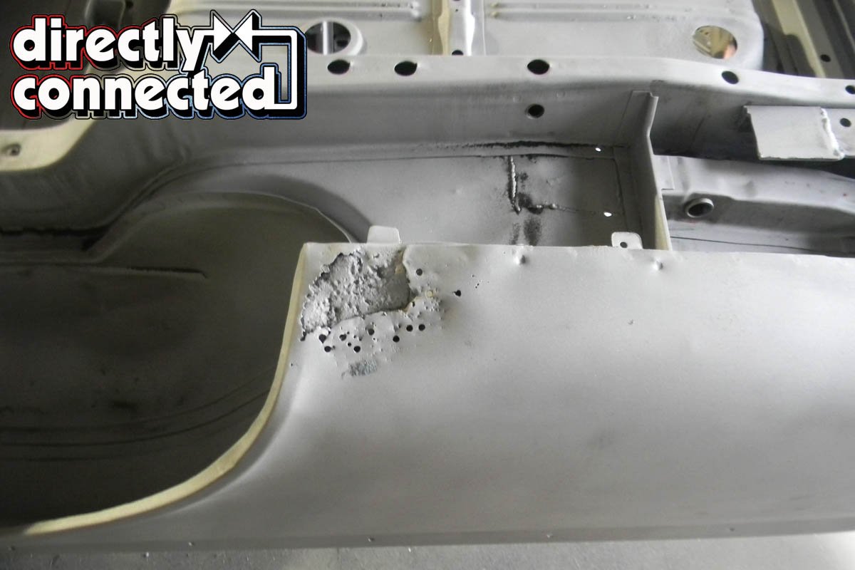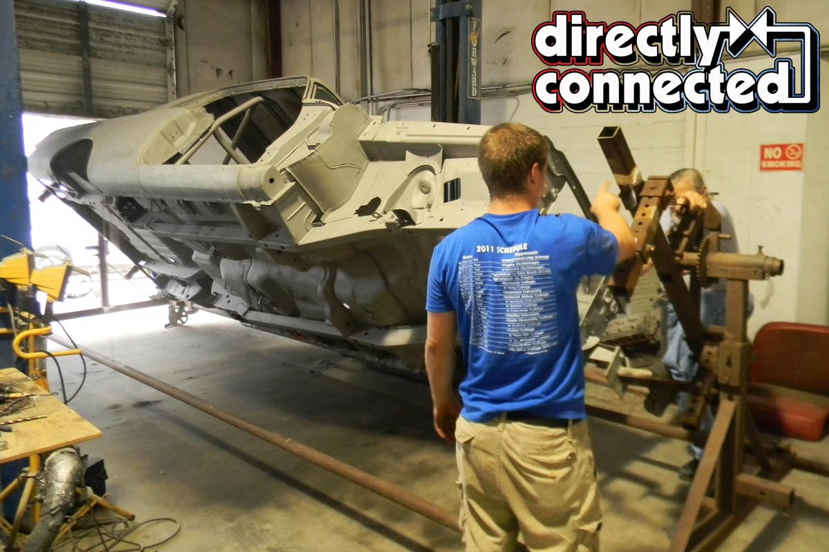 Above far left: The Dodge when it rolled into Rods, Mods and Restos. A warrior for many years it’s ready for a makeover. Above center left: Disassembly of the Dodge in preparation for the next chapter in its life. Above center right: Completely disassembled and mounted on the rotisserie. Above far right: Working over the body to make it better than new.