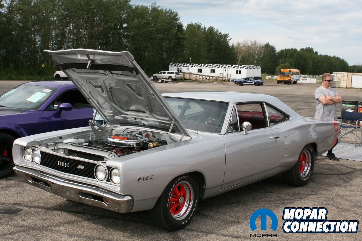 The day of the show, the weather forecast looked iffy. The weatherman called for a 40% chance of scattered thundershowers in the afternoon hours of the show. Despite that, the sun and warm temperatures came out in the morning and Mopars from far and wide came to the event to either participate in the car show and drag racing. However, just after noon, the dark clouds started rolling in and light showers started falling. While drag racing had to be put on hold because of the showers, most of the show participants stayed.
