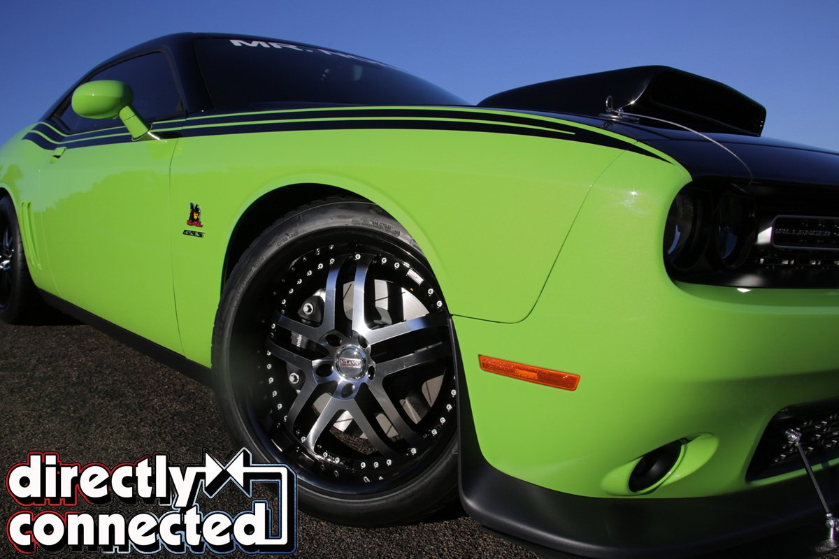 Serial Number 1, the Mr. Norm’s GSS Challenger that is the subject of this story is loaded with features, and sets the benchmark when it comes smokin’ hot. For starters, check out the custom Mile Deep Gloss Black paint on the upper body that provides the perfect contrast for the Sublime green. Adding definition to the side body mid-belt on the Challenger is the innovative Mr. Norm’s “Tip of the Spear” body side graphics that are a whole new take on the classic Challenger split side stripe.