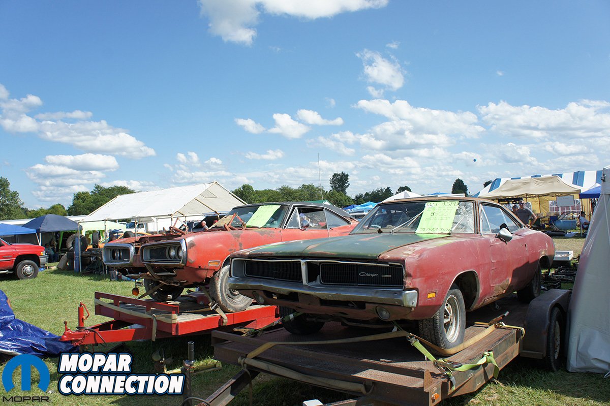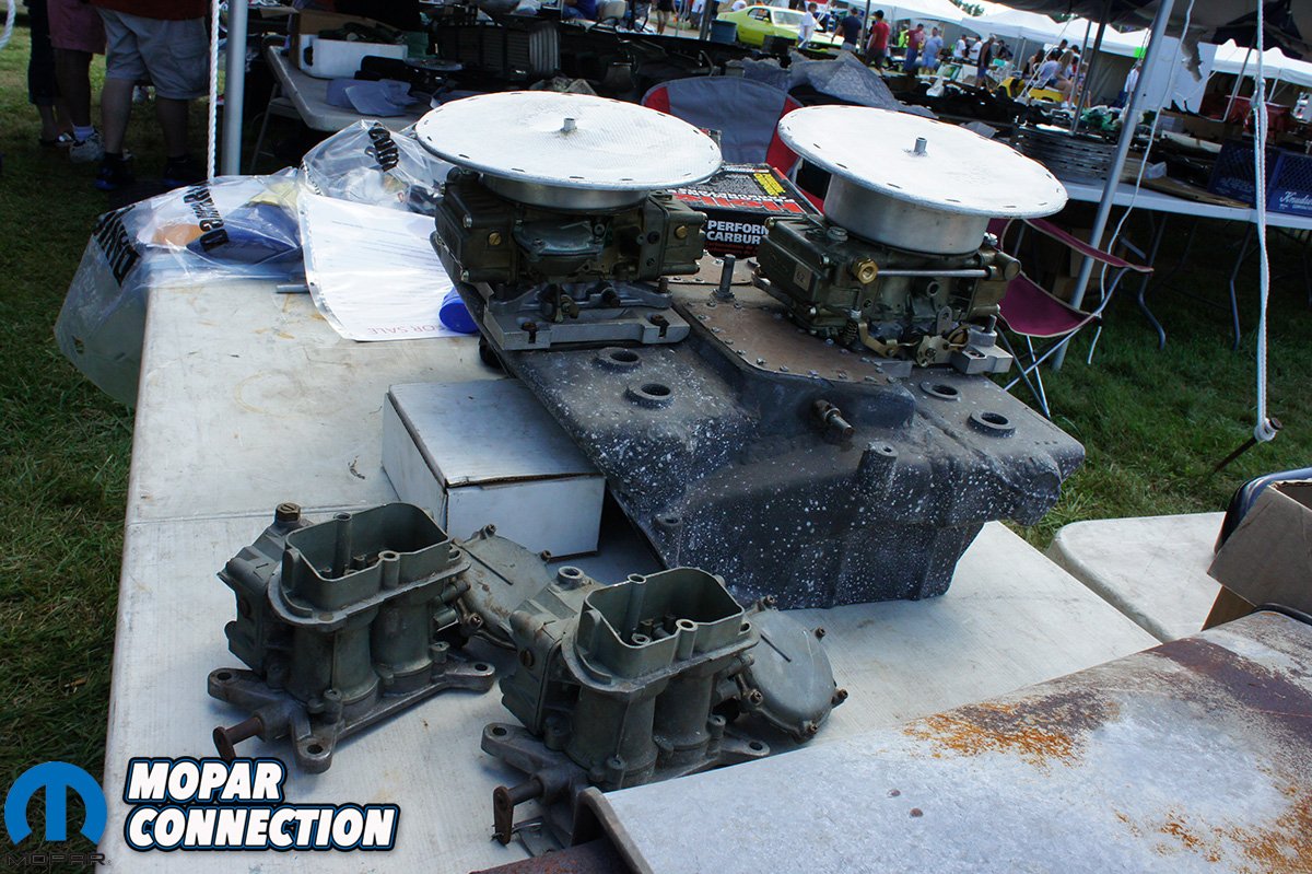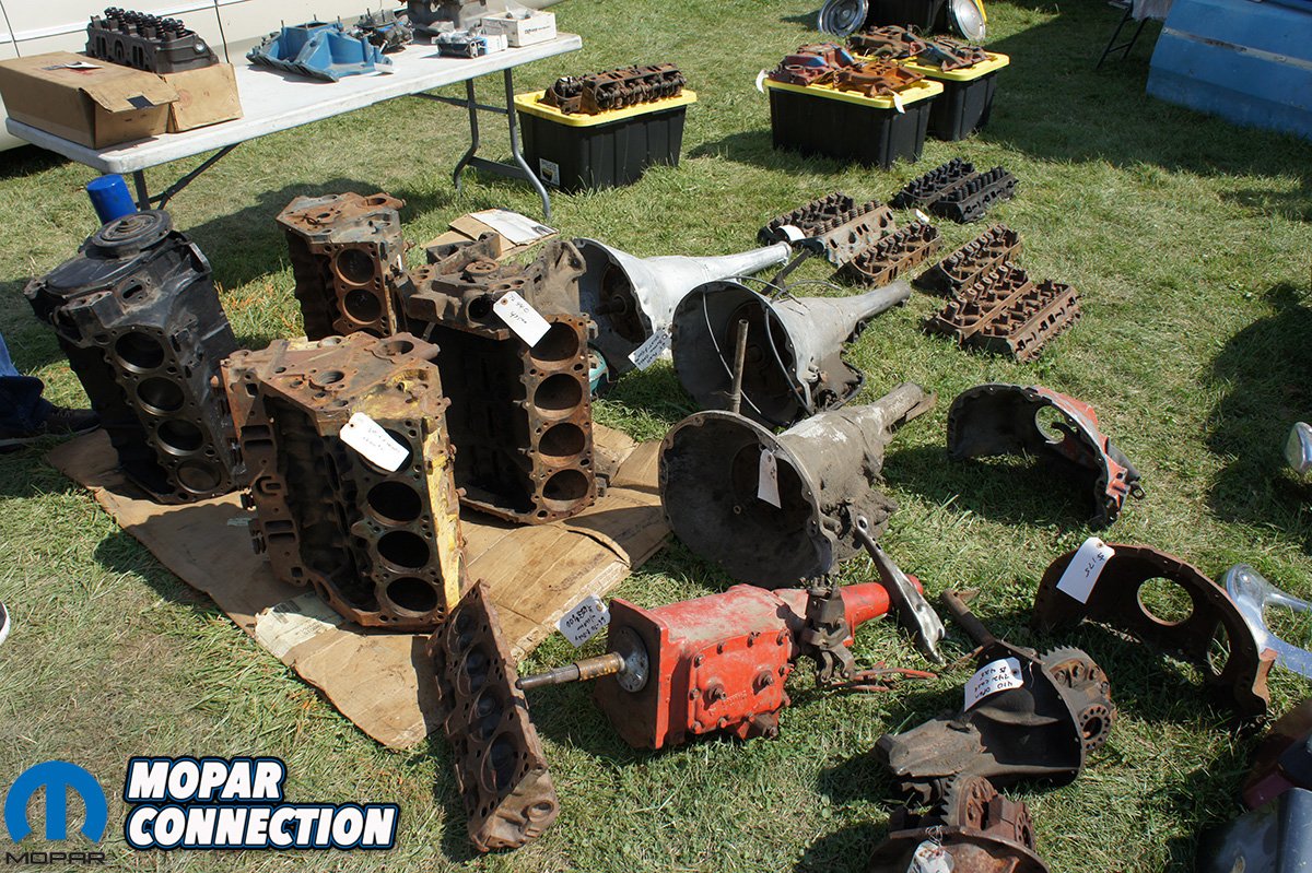We decided to head over to the swap meet area to search out a few parts for ZomBEE. We found a few pieces we needed but the parts were too nice or priced out of our budget. A lot of the parts for sale are in pretty good shape and could potentially bolt on and use. This is great news for the bargain shopper or someone that wants to build a nice driving car and doesn’t want to spend a ton of money restoring a vehicle to concours condition. We also saw a ton of motor parts, from 318s to 426 Hemi blocks. Out of the couple Hemi blocks we saw, one was a Keith Black aluminum block, but had some damage from a rod that took out both sides of the skirt. If you know the right shop, even a block damaged that bad can still be repaired.