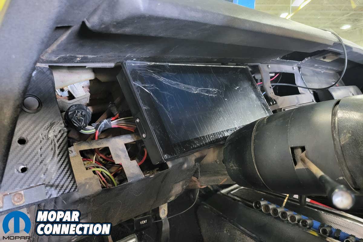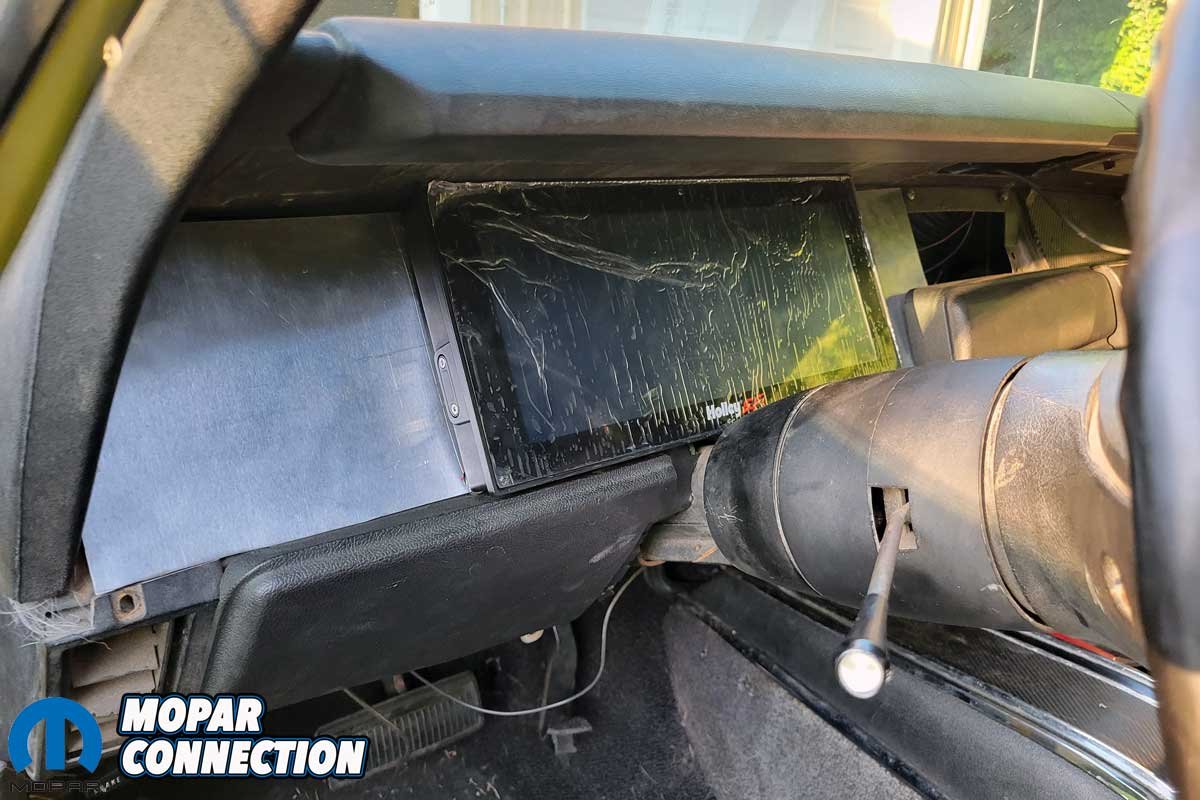 We tested the fit of the PVC multiple times, and after the proper sizing, we drilled holes for provisions to install the Holley dash and a pass-through location for the wiring. The selection of the Holley dash was perfect for us because we have a Holley Terminator operating the Gen3 Hemi under the hood of the Super Bee.