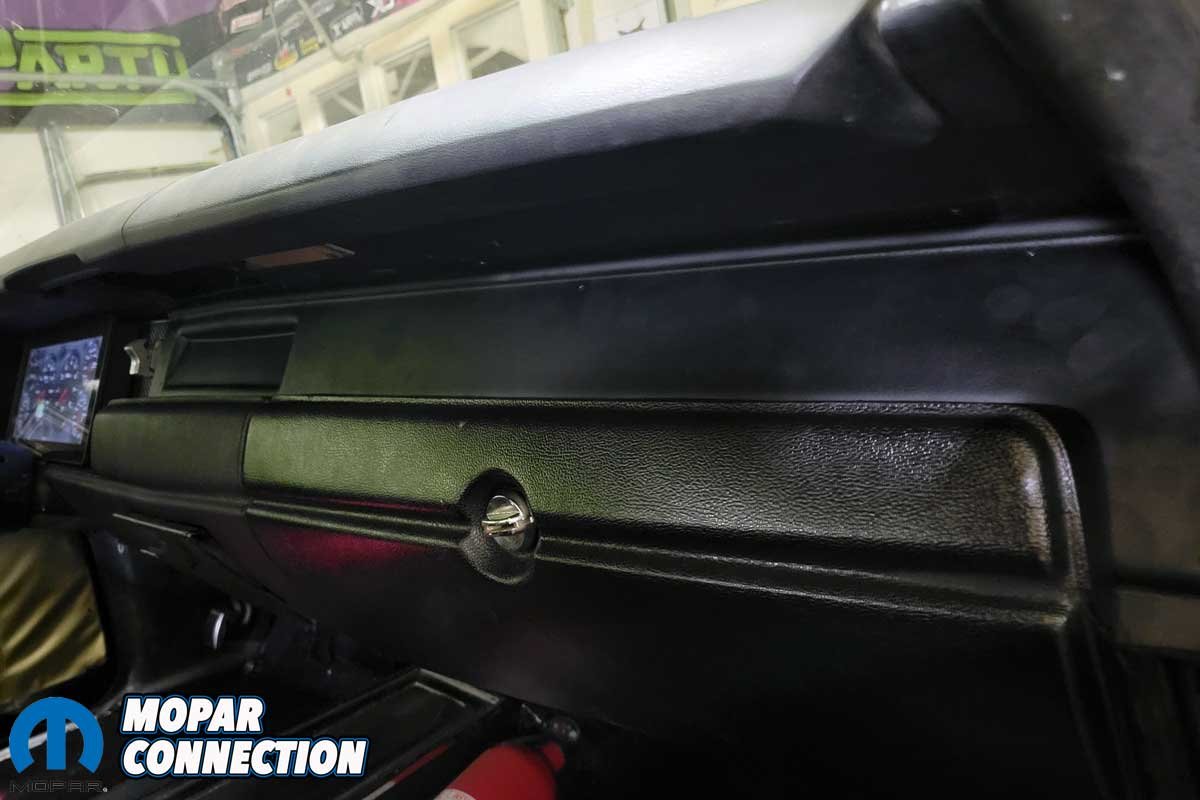 Above: The Classic Dash panel fits well. We ensured the glovebox door did not interfere with the panel. The factory and aftermarket black colors matched.