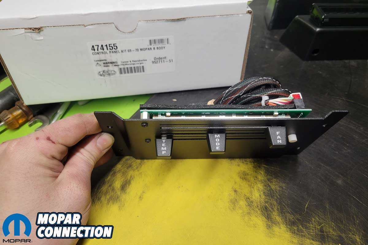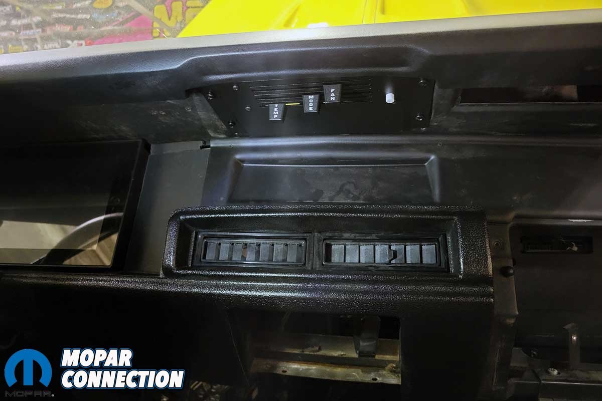 Above Left: Although we did not plan to install the Vintage Air components into the Super Bee, we felt the HVAC control panel should be installed to complete the dash upgrade. Above Center: The control panel fits nicely between the YearOne dash pad and the Classic Dash panel. Above Right: The freshly painted steering column contrasts nicely with the new Digital Dash and the black dash pad and trim panels.