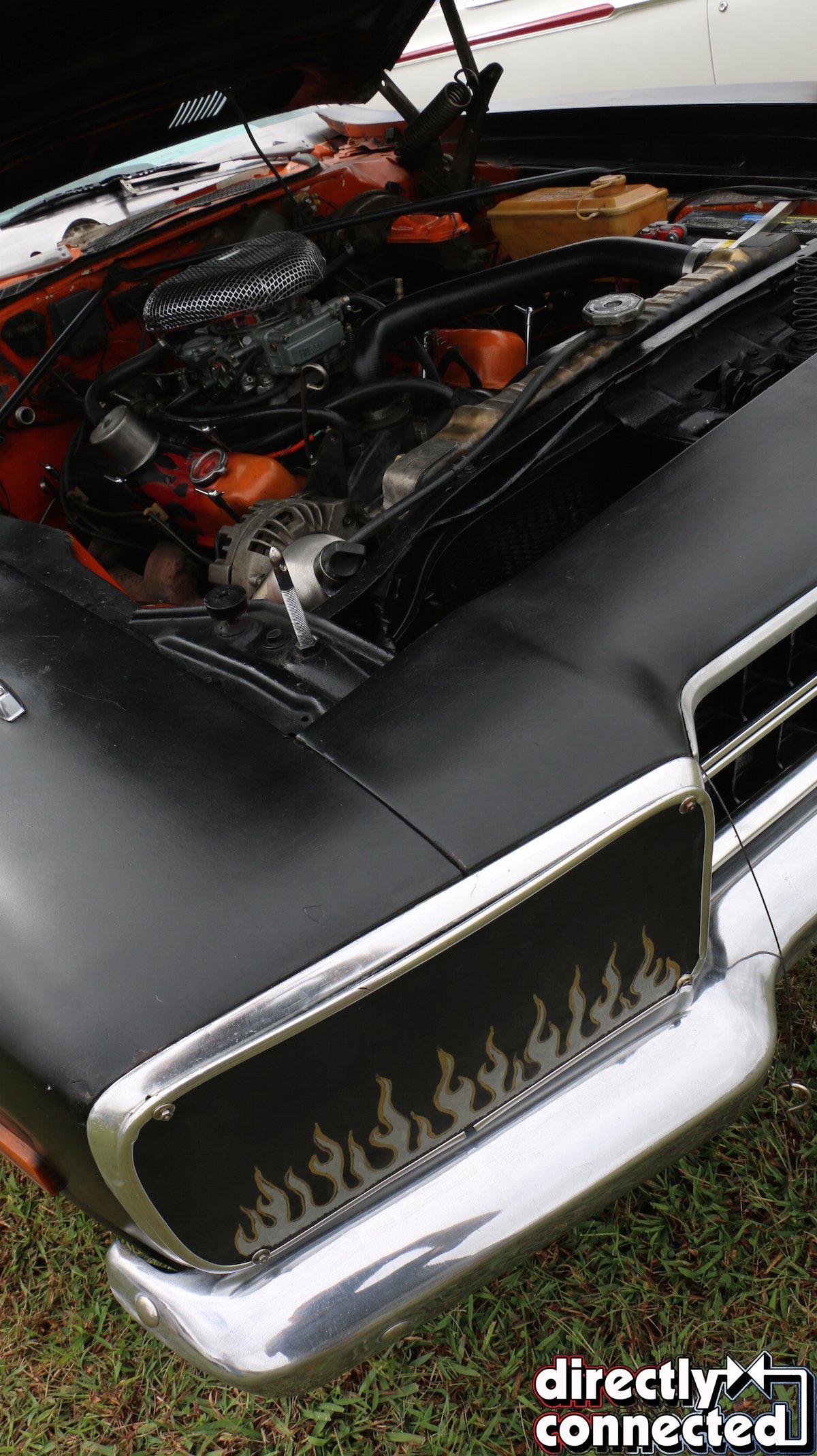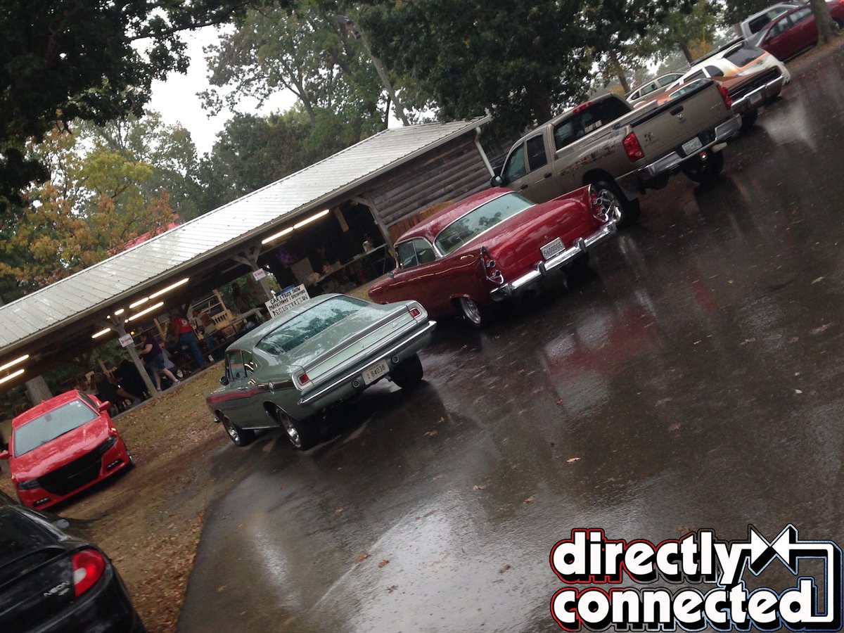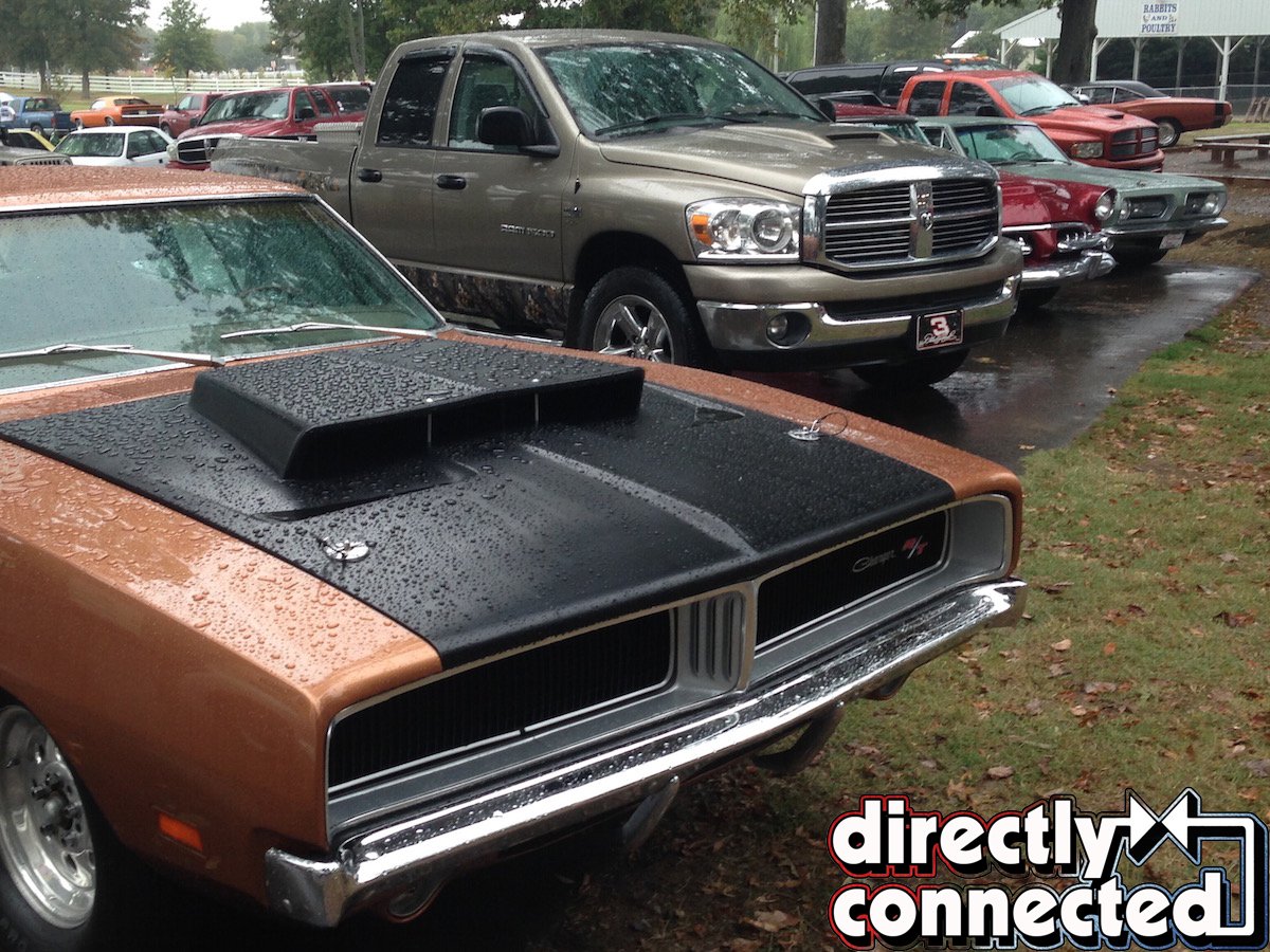 It looked as if the cruise would be canceled until a brief break in the downpour egged the crowd to attempt the “convoy style” drive over to Lebanon’s “Snow White Drive-In” to join their Friday night Cruise In. Directly Connected‘s own Editor-in-Chief Kevin Shaw (either bravely or stupidly) weathered the wet stuff behind the wheel of our ’69 Dodge Charger project car “Brazen” to join the fun, and even paired up with Directly Connected‘s Technical Editor Mike Wilkins (who was serving as a judge for the show the next day) to lead the procession through town.