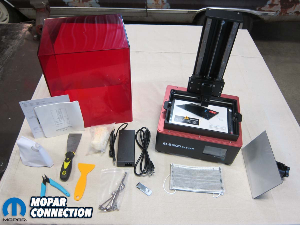 Elegoo’s Saturn resin printer was the perfect fit with a 4.72” wide by 7.55” long by 7.87” tall build volume and a resolution of 0.002”. For reference, that’s roughly half the thickness of an average human hair. Our print list included a bunch of smaller detailed items like radio knobs, emblems, and brackets, so that miniscule resolution would be all but necessary.