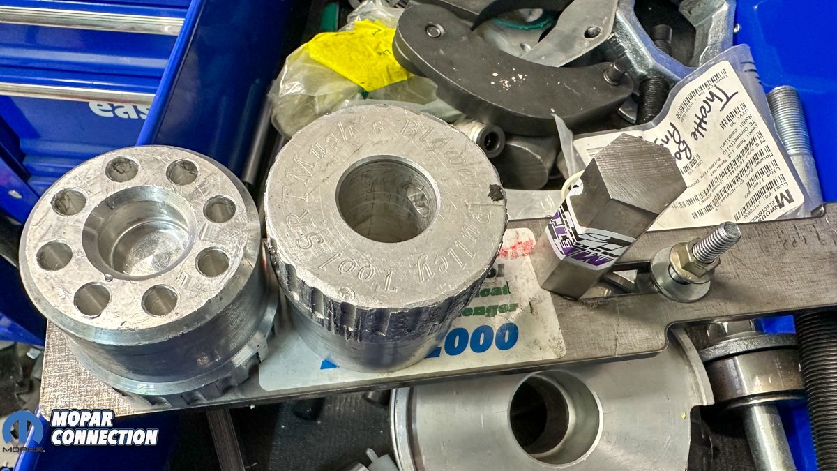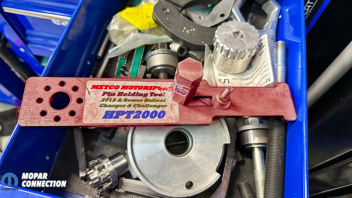 Above Left: If the supercharger is from a Hellcat, the correct pulley removal tool and hex driver can be purchased from Metco Motorsports (highlighted in red). Above Right: The Redeye and Demon require two aluminum tools to remove the pulley. They are available from AAD Performance.