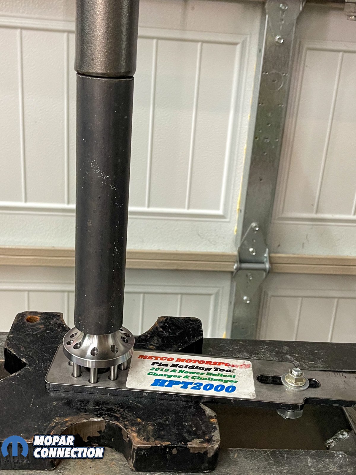 Above Left: With our pin holder tool to keep the pins lined up correctly, we pressed the coupler onto the pins. Above Right: We made several measurements to guarantee the pins’ installed height was correct.