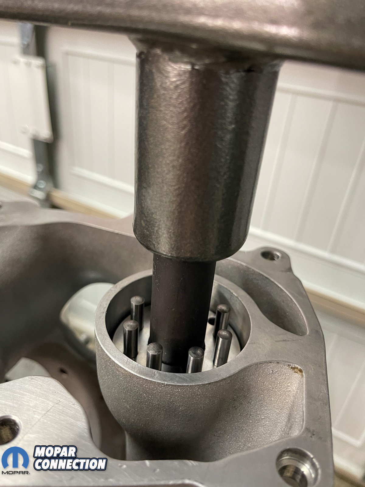 Above: The second snout shaft bearing was pressed into the case and onto the shaft. Again, the proper tools and some patience was necessary to get everything lined up and seated properly.
