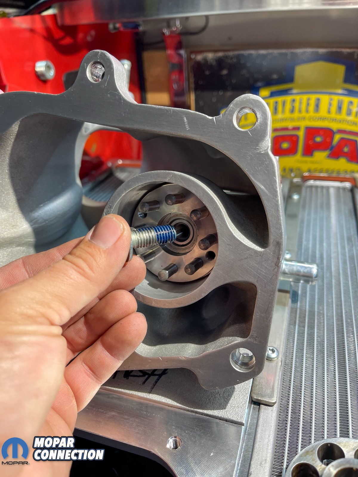 Above: When installing the supercharger snout, Dodge has a preference in the order of the bolt torque. Follow the sequence for the best results.