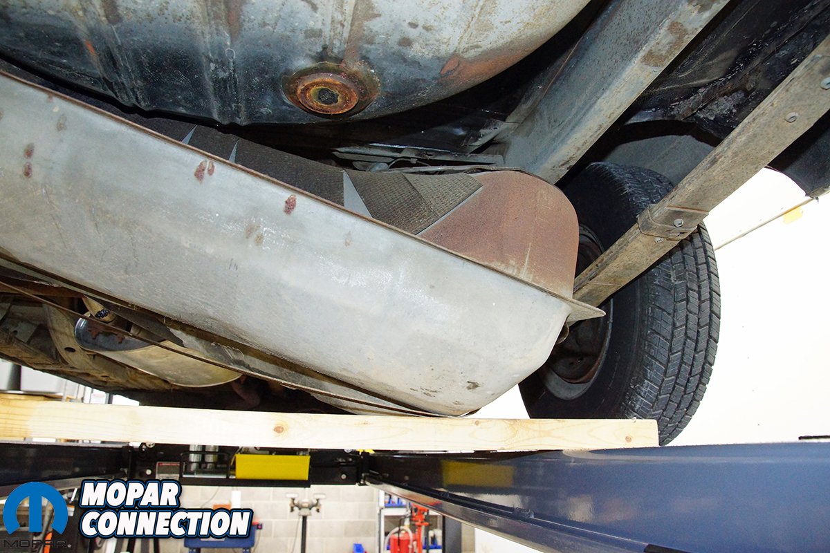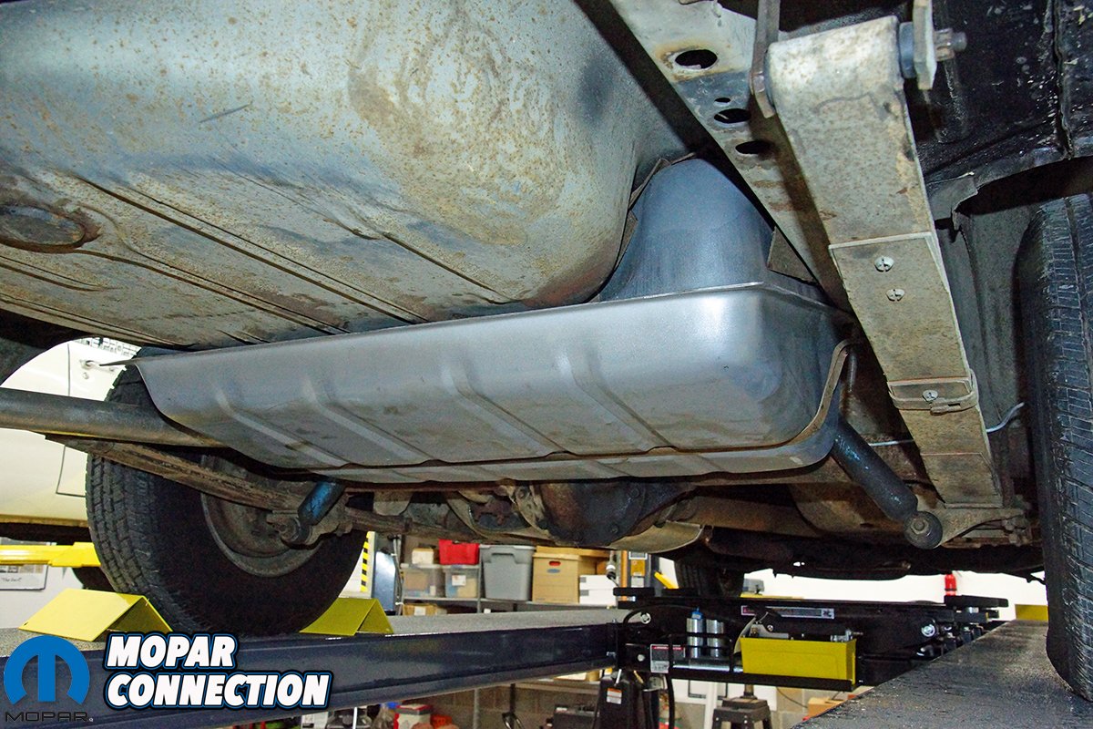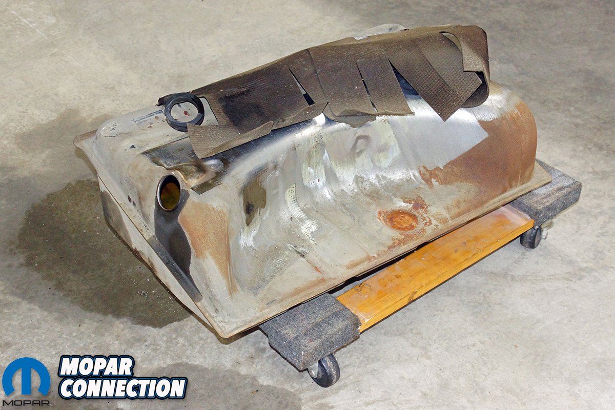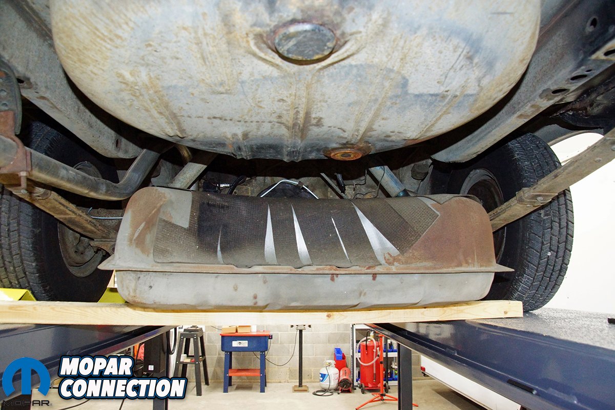 For those unfamiliar with the 1967 Mopar A-bodies, there are several things that are different from the 1968-76 versions, and one difference is the design of the gasoline tank and how it mounts to the chassis. We were concerned we would have difficulty finding a new tank, which would leave us searching for a good used one. Luckily for us, Classic Industries has the one-year-only tank and all the related hardware.