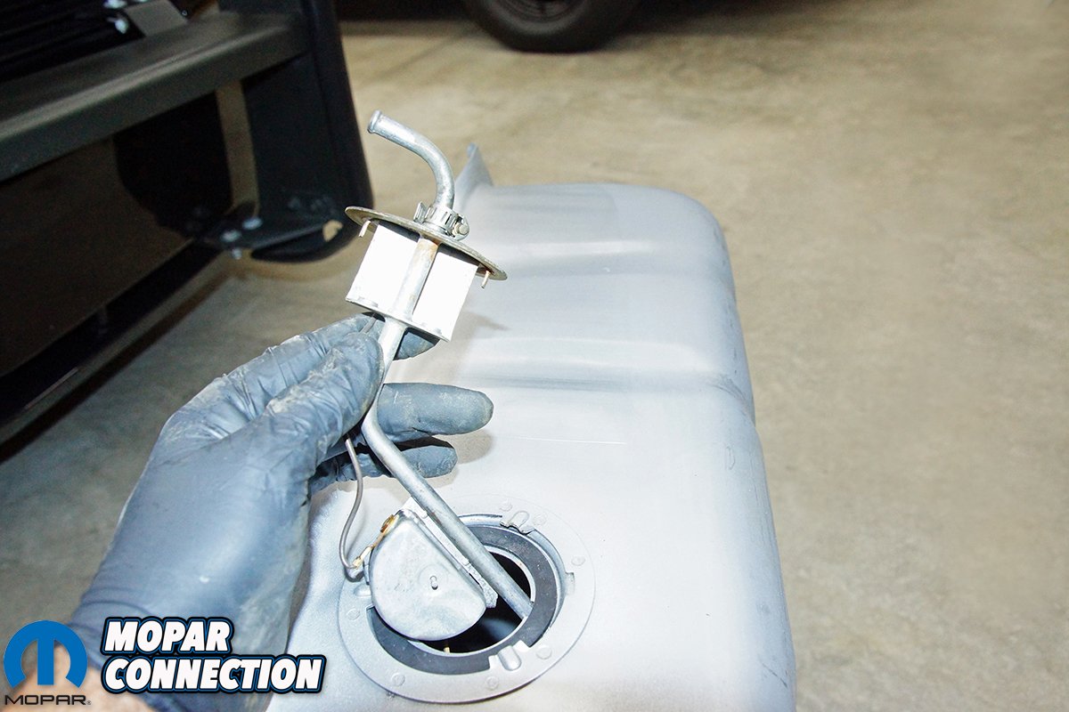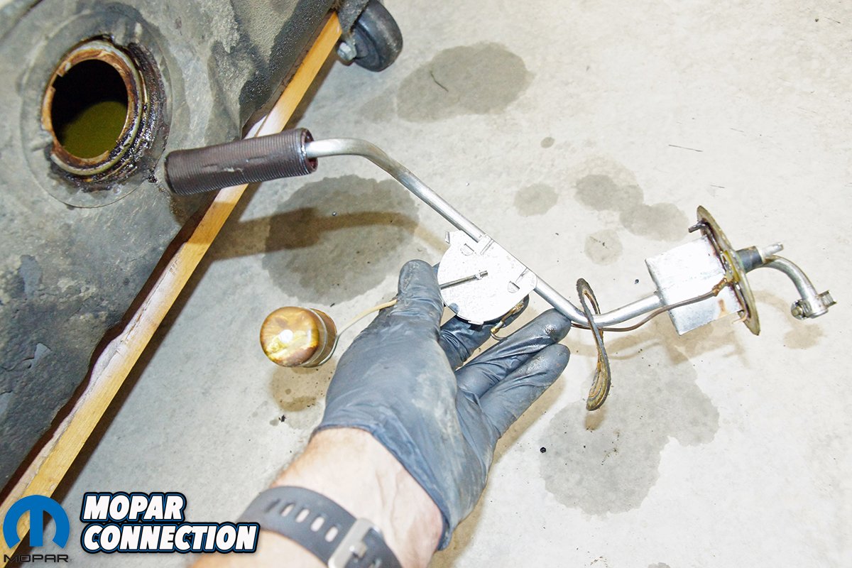 To get the Dart back on the road, we picked up a 1967 Mopar A-body, Zinc-coated steel, 18-gallon fuel tank (part no. FT6002A), a 1964-74 Mopar fuel filler neck grommet gasket (part no. MF296), and a 1960-76 Mopar A/B/E-body 5/16” fuel sending unit pickup filter that was a molded reproduction of the original (part no. MF285). Removing fuel tank is no simple task and decided that the gasket and filter should be changed to prevent future issues.