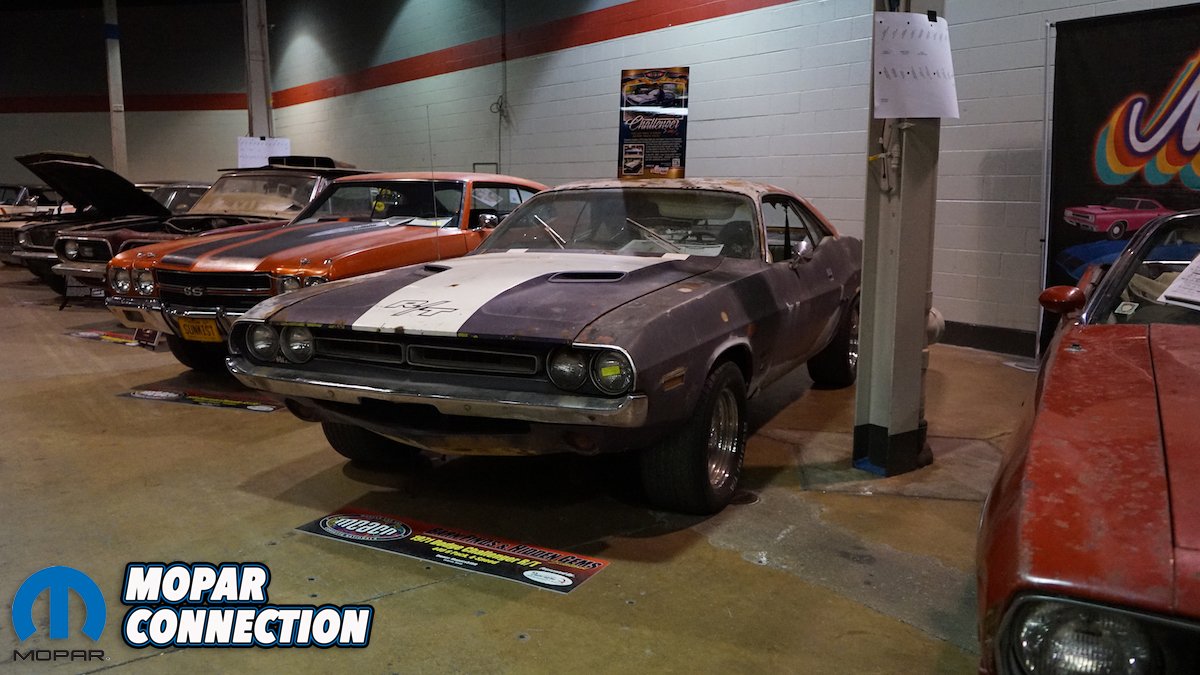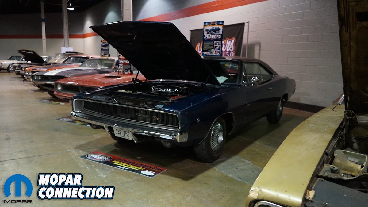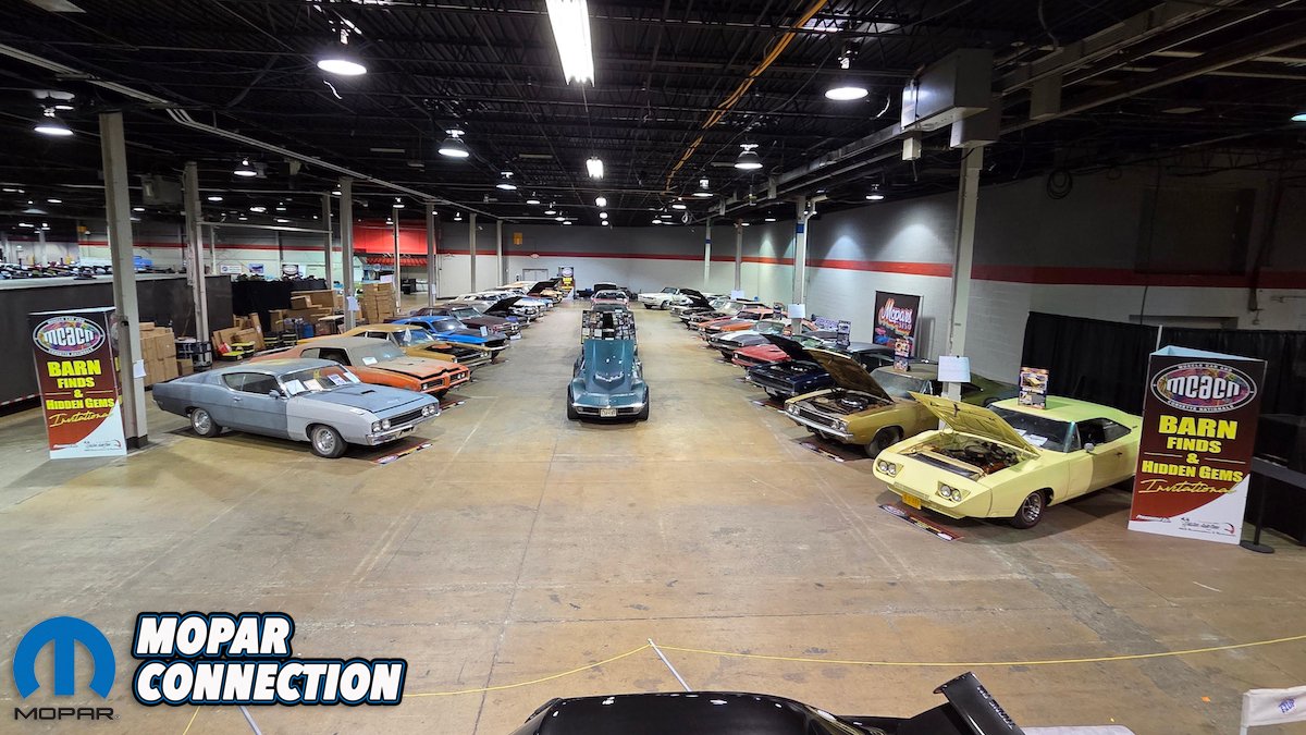 2025 was another incredible year, with a very wide variety of cars coming from all over the place. Up front along the wall we had five cars that came from the “Mopar5150” group. This included a real 1969 Dodge Daytona, a 1969 Charger 500 Hemi car that came out of Indiana. Next to that was a 1968 Charger R/T Hemi car and then a pair of E-bodies. A red 1970 ‘Cuda convertible and a 1971 Dodge Challenger R/T.