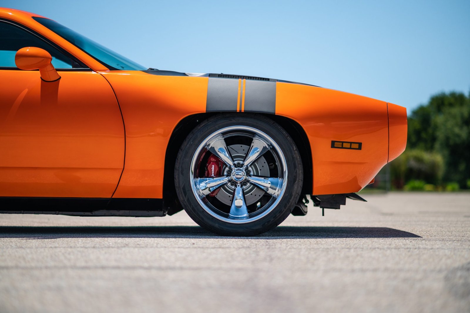Steve came across Doug’s original rendering of the GTX in blue and found it appealing but was still working on his Daytona at this time. Nearing the end of his Daytona build, he found an updated rendering of the GTX now wearing a power bulge hood and bright orange paint and renamed Orange Crush.