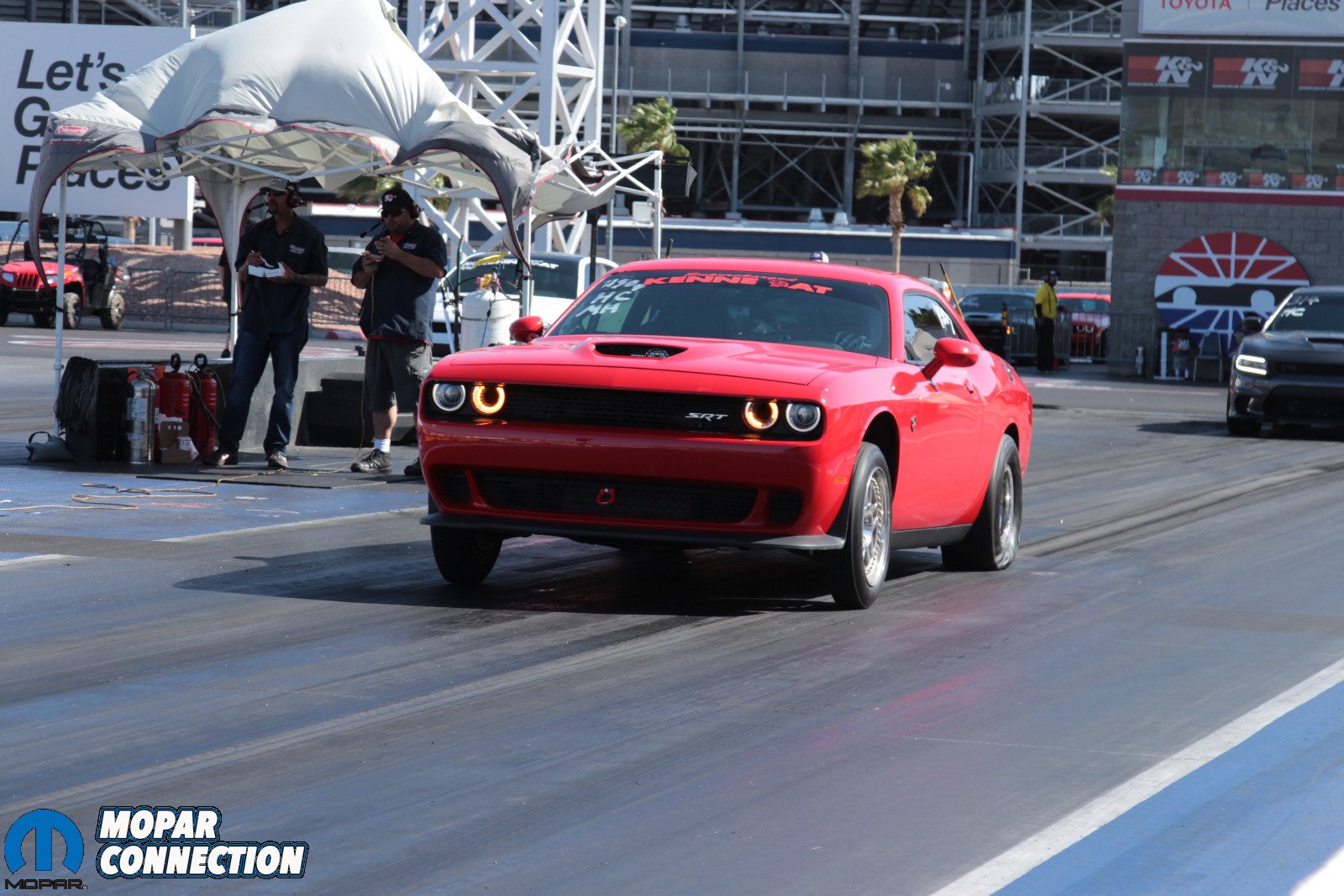 And speaking of mixing things up a little, we got to see what the 2018 Dodge Challenger Demons were capable of. There were a handful of them showing up for the event, and that only sparked more encouragement for the Hellcat crowd to come out and show everyone what they’re made of, too. Another change that came with the show this year, though it was not used for this event, is the new track at Las Vegas – specifically the four-wide dragstrip. Many of us watched the progress with heavy anticipation and curiosity as to whether we were going to see a four-wide Demon battle on the strip, but it was not going to happen this year.