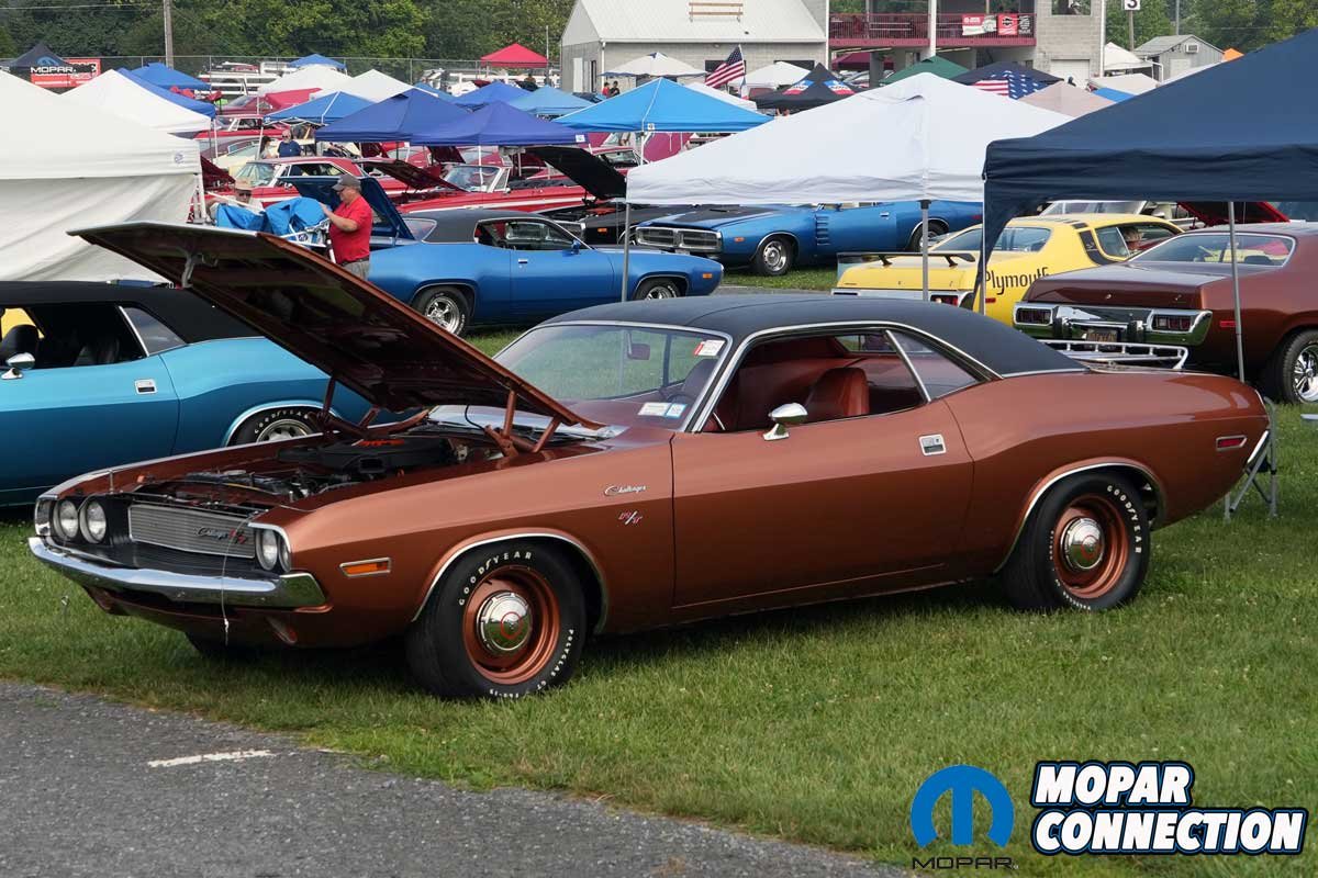 At the heart of this year’s show were two of the most iconic E-Bodies ever to leave a Chrysler assembly line: the 1970 Plymouth AAR ‘Cuda and Dodge Challenger T/A. Celebrating their 55th anniversary, these 6-barrel Trans Am homologation specials received a spotlight tribute that brought out an incredibly diverse lineup. Inside a central feature building and adjoining tent, several immaculate, concours-level restorations were highlighted. Just outside, a much larger fleet of AARs and T/As stretched across three long rows near the main stage.