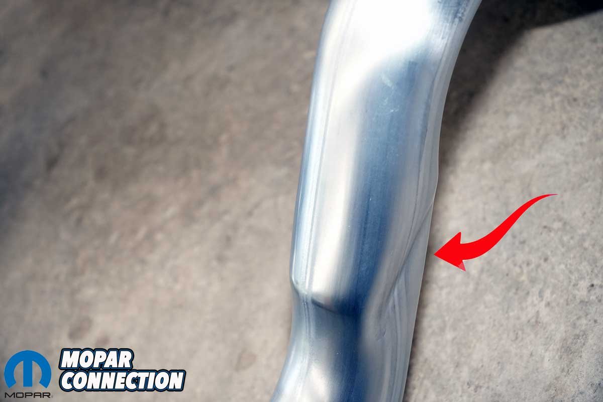 Accurate Exhaust also offers multiple tailpipe configurations: resonators (part no. CBH426RE), resonator delete with full tailpipes for tips (part no. CBH426ET), or resonator delete with turndown style tailpipes (part no. CBH426TD). We opted for resonators that were welded to the over-axle pipes, precisely as the assembly line did. The kits fit factory exhaust manifold castings #2780501 or #2780611 (left manifold), and #2780508 (right manifold).