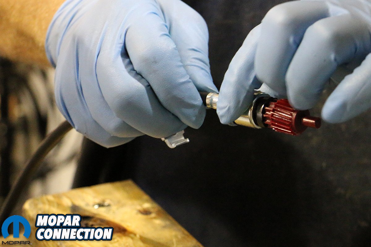 Above: We took the extra measure by removing the cable from the core and lubing the speedometer cable prior to installing it in the tail cone, located just inside of the cross member.