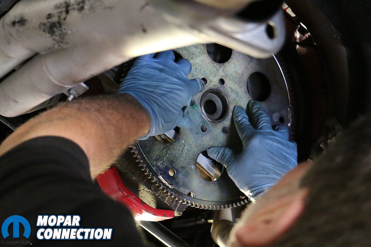 Above: Because the A41 runs a toothless GM-style converter, you cannot use a traditional Chrysler flywheel, but rather a customized-by-SST Chrysler manual transmission flywheel (to engage your starter) that will bolt up to your crank’s flange as well as the lock up converter.