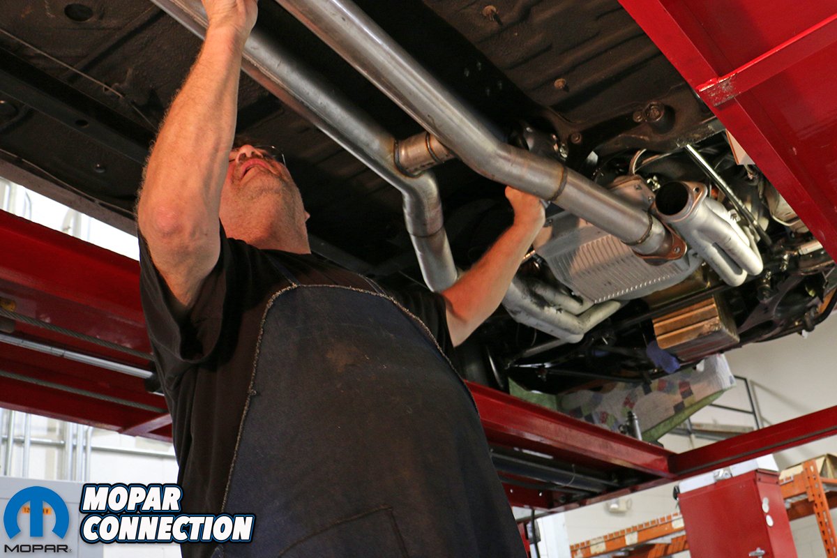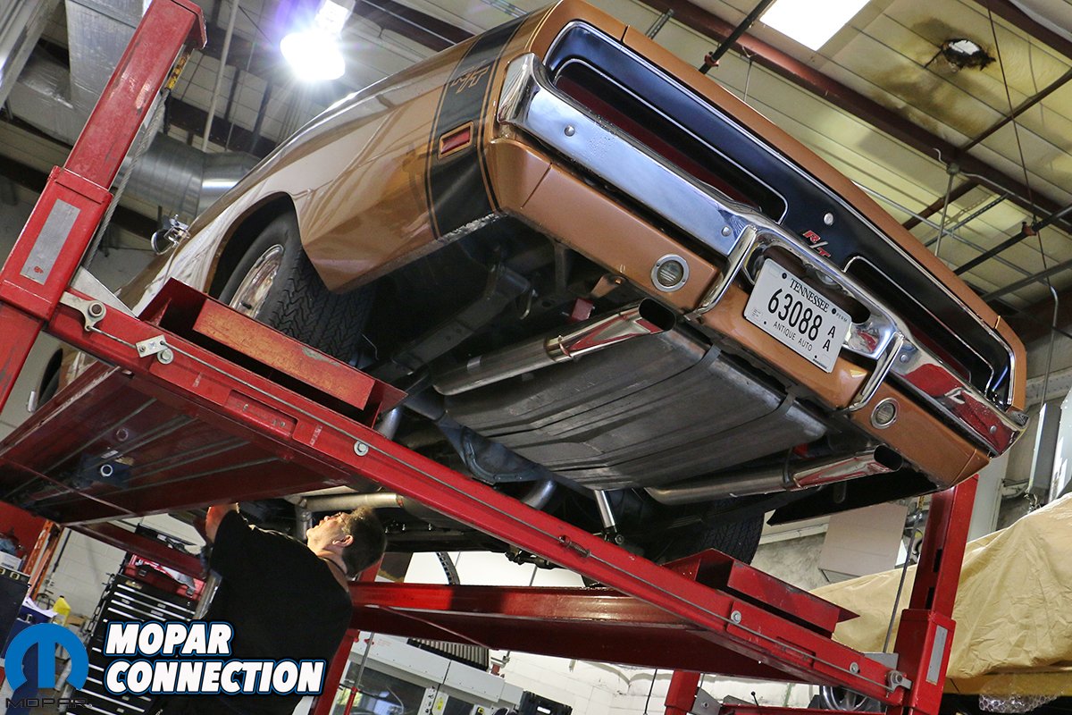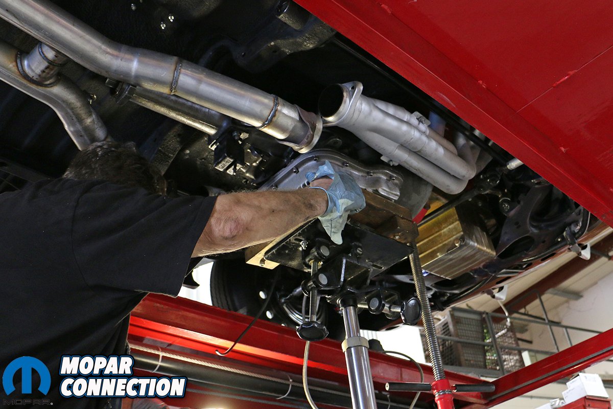 Once there, we met with Jack and the team and loaded Brazen onto their lift. While our Charger was being prepped for surgery, we took a closer look at the complete A41 kit: Every PerfectFit Kit comes with all of the hardware, fittings and of course, components to fit your specific application. The list is considerable: the A41 automatic transmission, custom-cast aluminum bell housing, OEM-style dipstick and tube, auxiliary oil cooler (for high performance Stage 2 and 3 only), a 10-inch lock up torque converter, throttle position sensor, pre-bent steel cooler lines, SFI-approved flex plate, SST’s own heavy duty formed steel and powder coated crossmember and rubber isolator mount, speedometer cable, the complete wiring harness, inspection cover, mounting hardware, and a high strength, computer-balanced driveshaft with sealed u-joints and slip yoke.