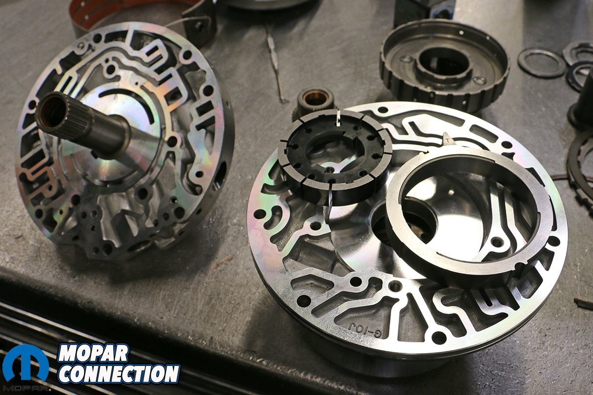 Above left and center: SST offers three stages of possible performance, since we exceeded even its Stage 3 kit, SST and Certified labored to ensure that this “Stage 3 Plus” could withstand our Charger’s 700 lbs. ft. of torque by using 4-pinion planetaries, hardened sun shells, beefier sun gears, a heavy-duty band, improved clutch packs, and a few other tricks. Above right: The pump and stator are hand assembled and rigorously tested prior to assembly.
