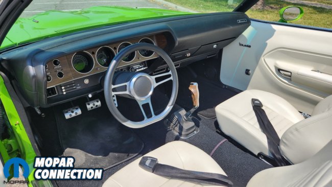 The rear of the ‘Cuda uses a Street-Lynx suspension kit for the 70-74 E-body, which is a triangulated 4-bar rear suspension system. Now, the Plymouth is capable of handling as well as having power, much like a contemporary muscle car.