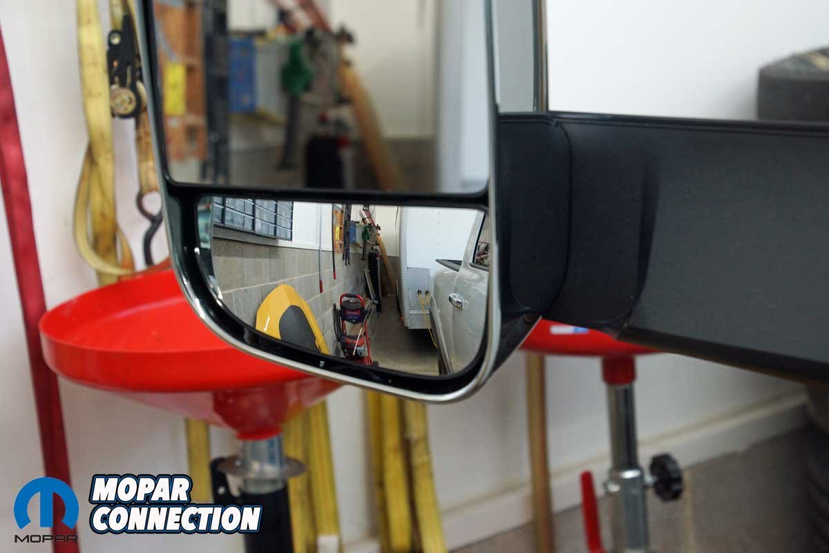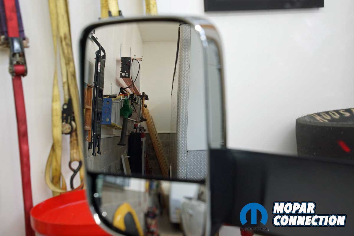 Early on, we towed our drag race ’69 Dart on an 18-foot open trailer, and we had a decent view of what was behind and beside us. However, when we upgraded to a 24-foot long, 96-inch-wide enclosed trailer, the factory-installed rearview mirrors provided no sight of what was behind us, and it was not easy to see what was passing us on either side of the trailer. Finally, upgrading to a 30-foot long, 102-inch-wide enclosed trailer nearly eliminated all chances of seeing what was behind or beside the trailer with the stock mirrors.